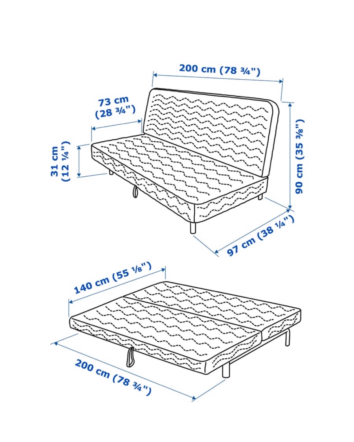 * Spacious queen-sized bed when unfolded, thanks to an easy click-clack mechanism.