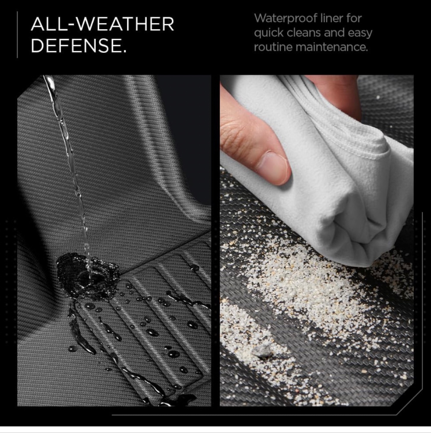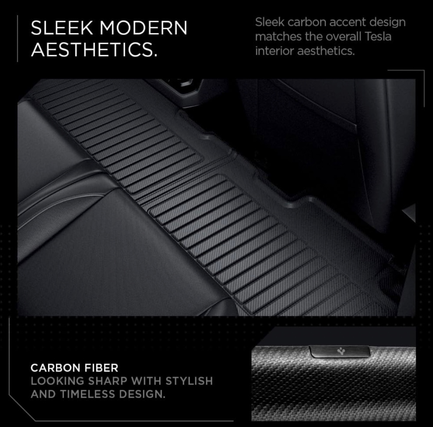 These floor mats are designed specifically for the Tesla Cybertruck. They offer all-weather defense with a waterproof liner for easy cleaning and maintenance. The grippy, non-marking, and non-slip pattern ensures secure footing on the drive. They also feature an anti-marking design to protect your floorboard from wear and tear.