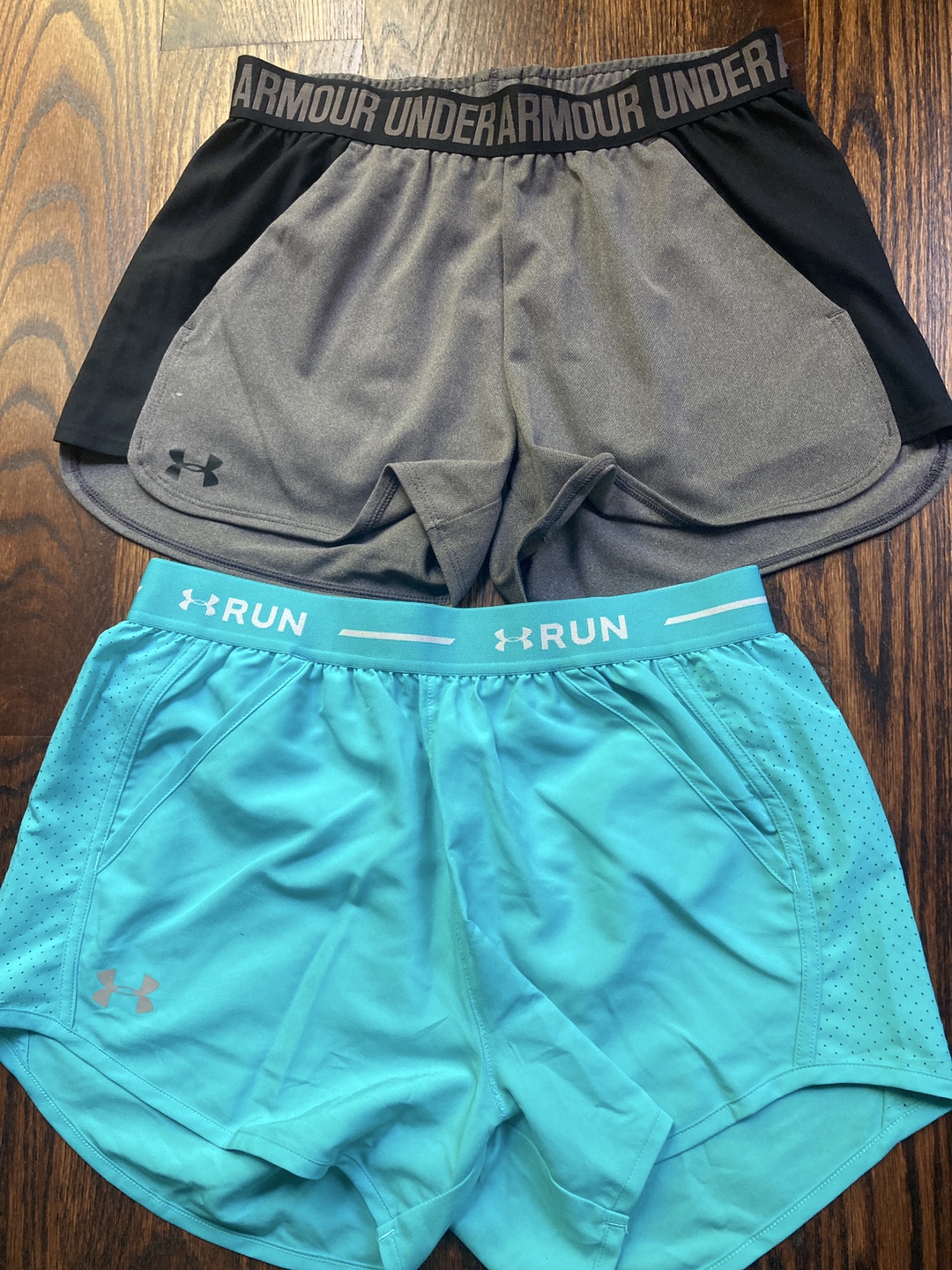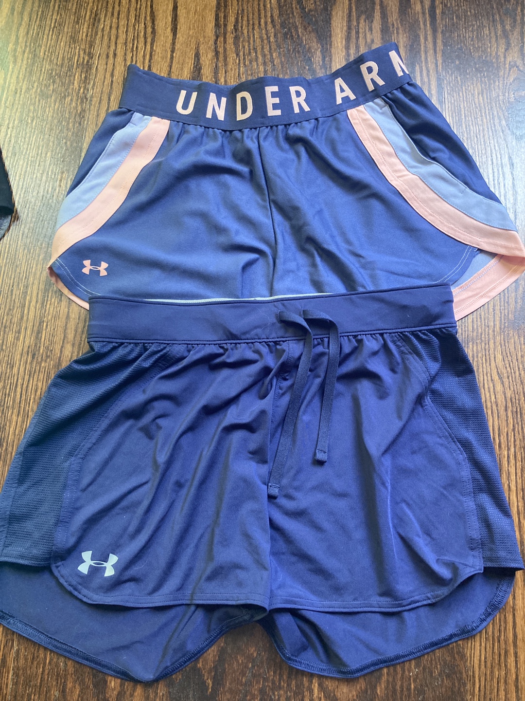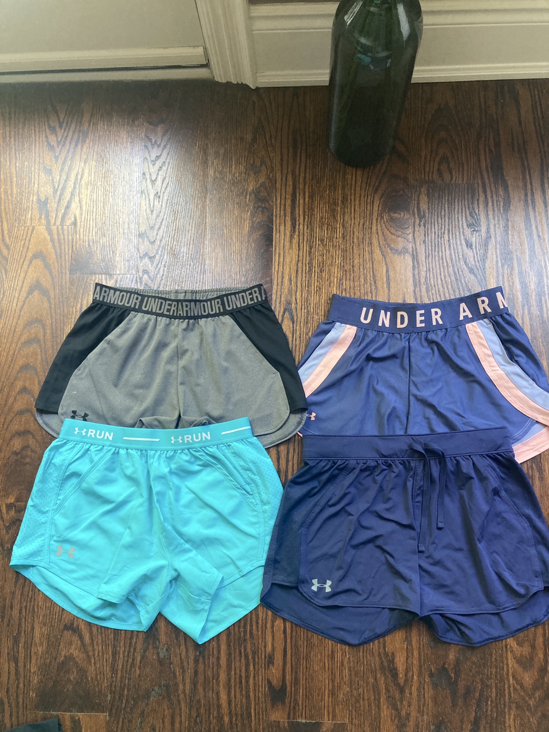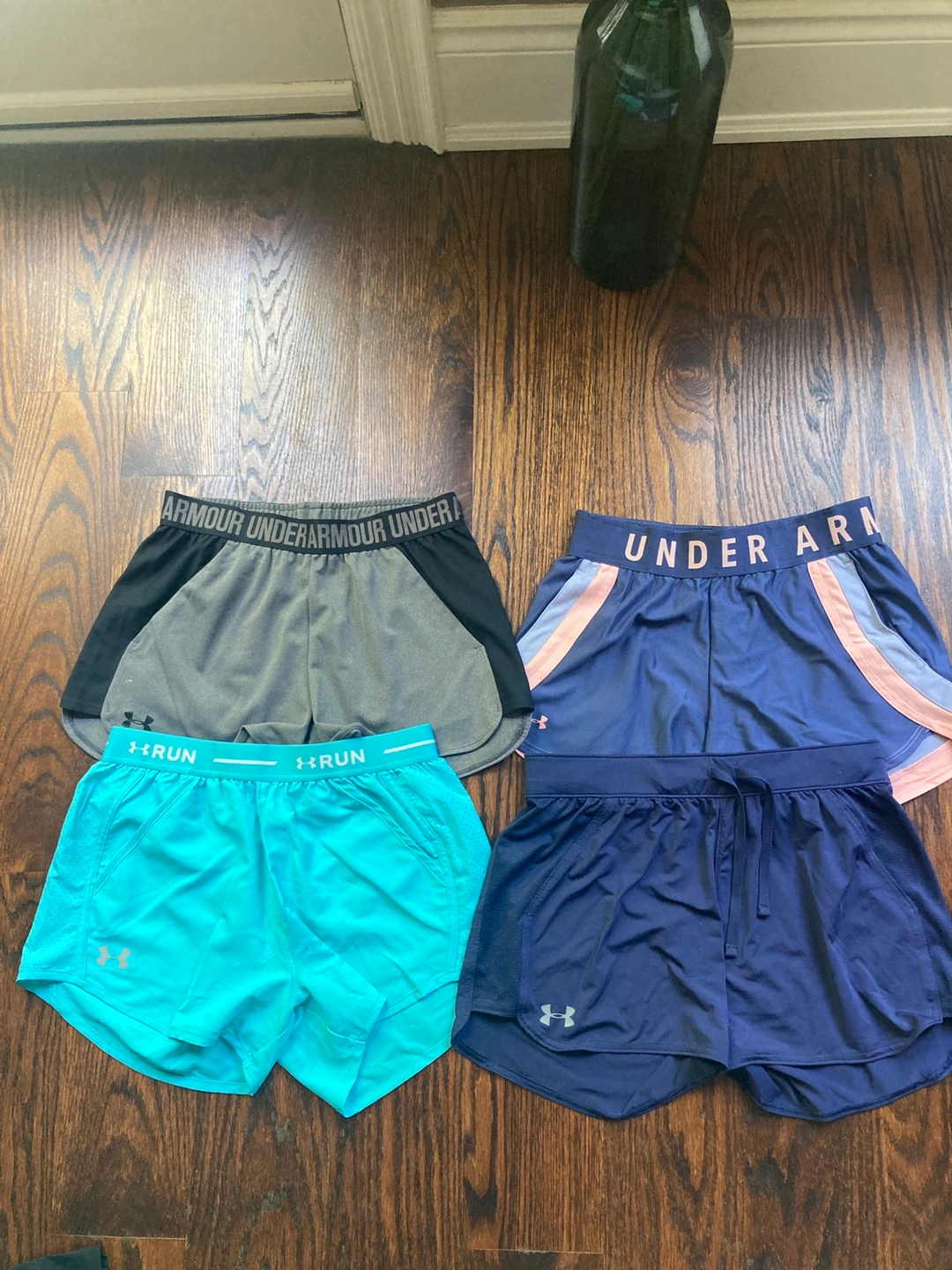Price is for all 4 pairs of under armour ladies running shorts. In excellent condition, hardly worn. All are size small. Great for working out or running. Price is firm.