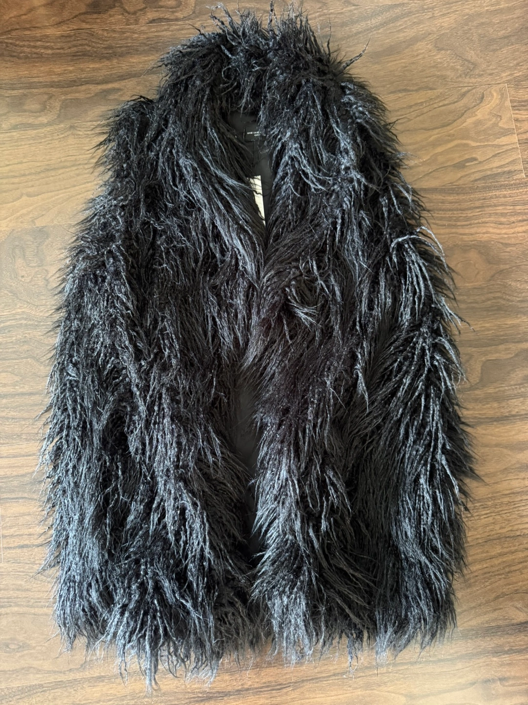 Selling a stylish faux fur vest measuring approximately 28 inches in length. Perfect for adding a touch of flair to your wardrobe! Xs would fit up to M size oversized Brand new