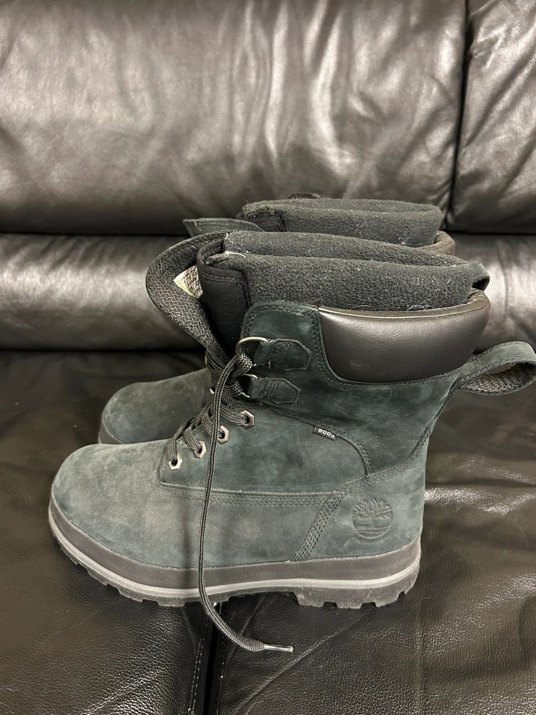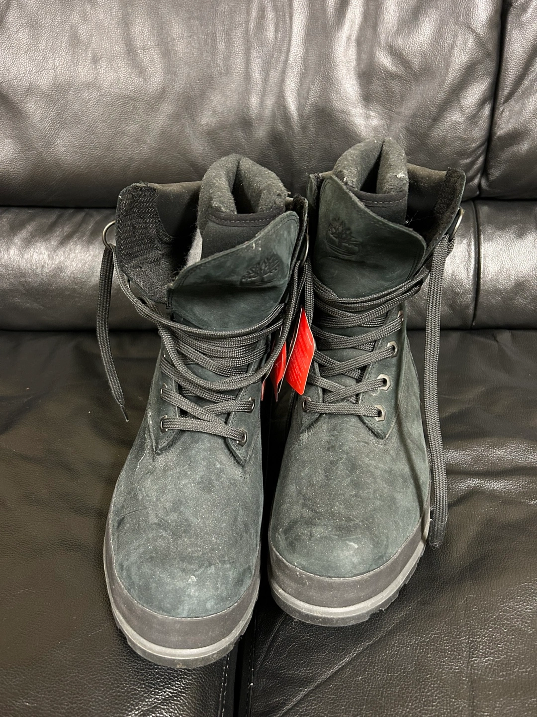 Selling a pair of Timberland waterproof boots in black. They are in great condition and ready for the Canadian weather! They have a classic Timberland look and are built to last