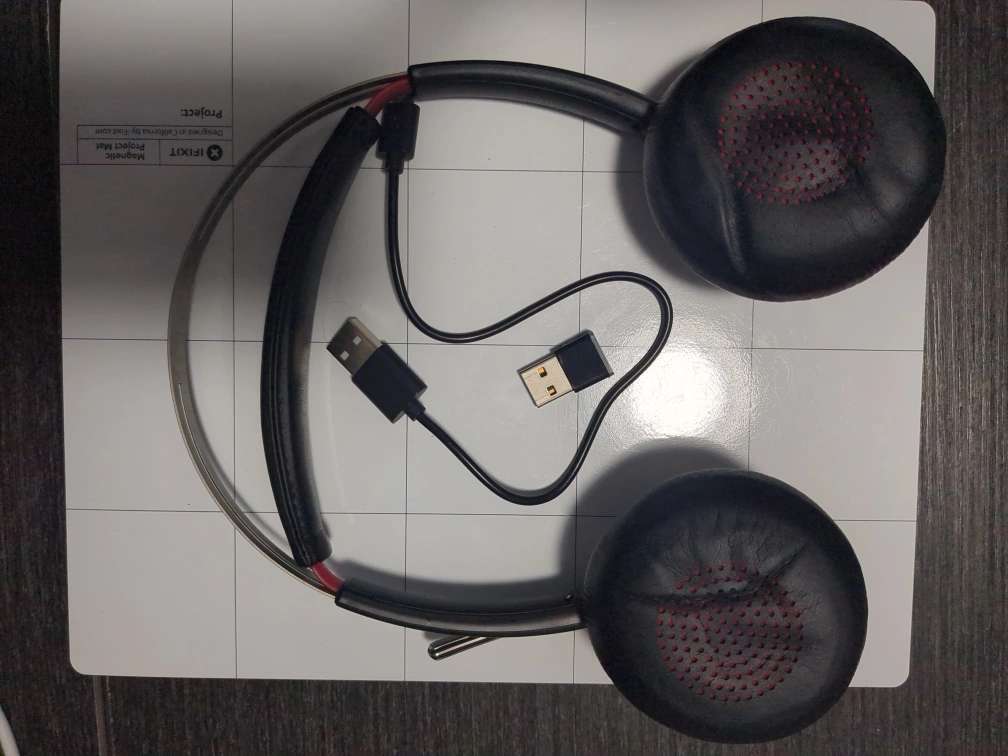 Plantronics wireless headphones in black. They come with a USB cable, USB Dongle, and a carrying case. Great for listening to music or taking calls! Cash only.