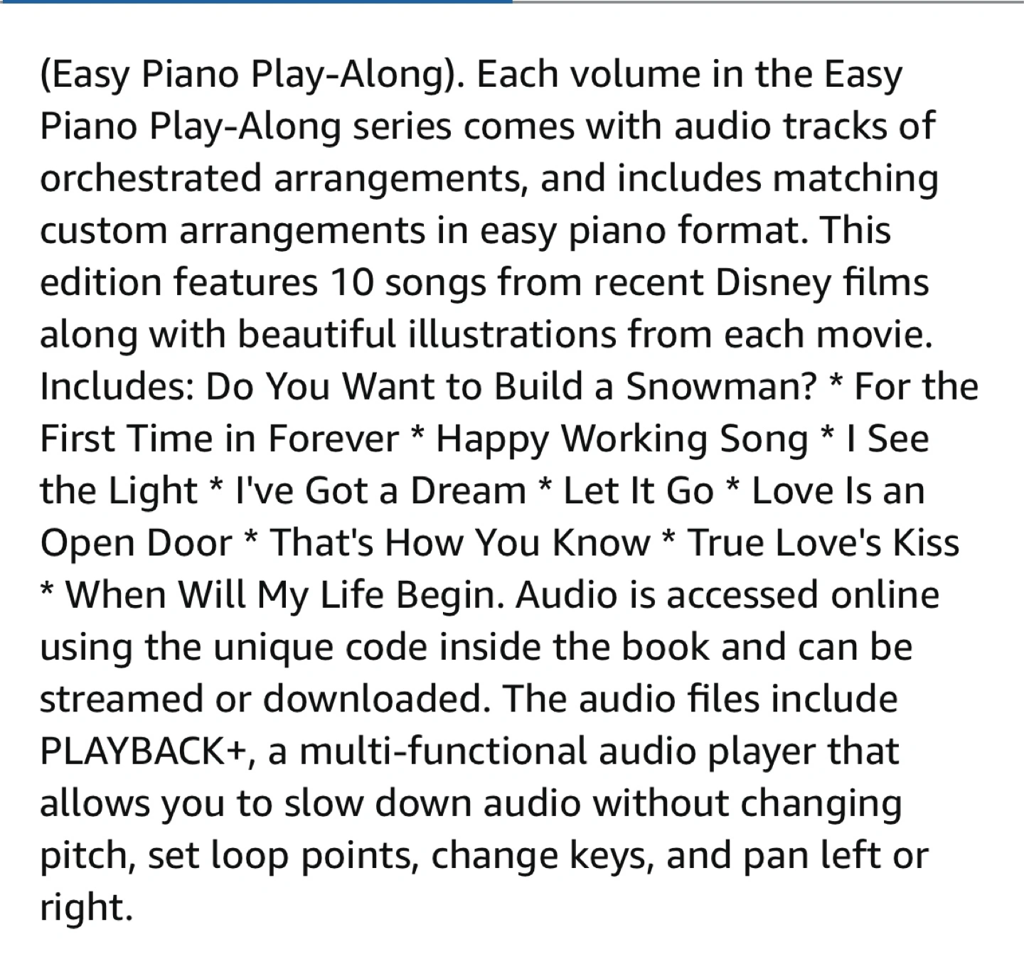 Songs from Frozen, Tangled and Enchanted: Easy Piano Play-Along Volume 32 (Bk/Online Audio)