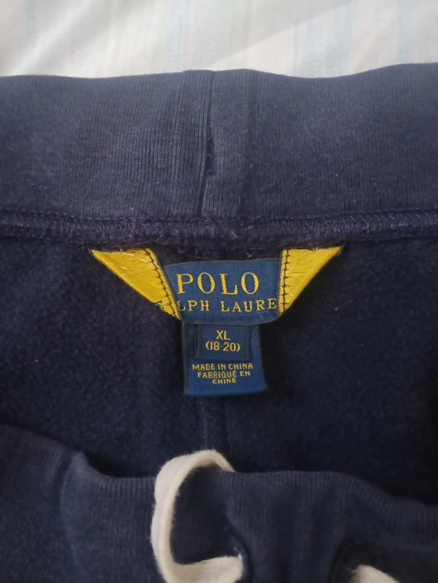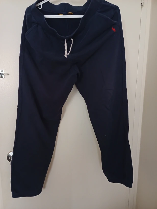 Comfy Polo Ralph Lauren sweatpants in navy blue! These are perfect for lounging around the house or running errands. They feature a drawstring waist and the classic Polo logo.