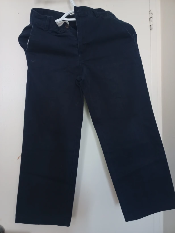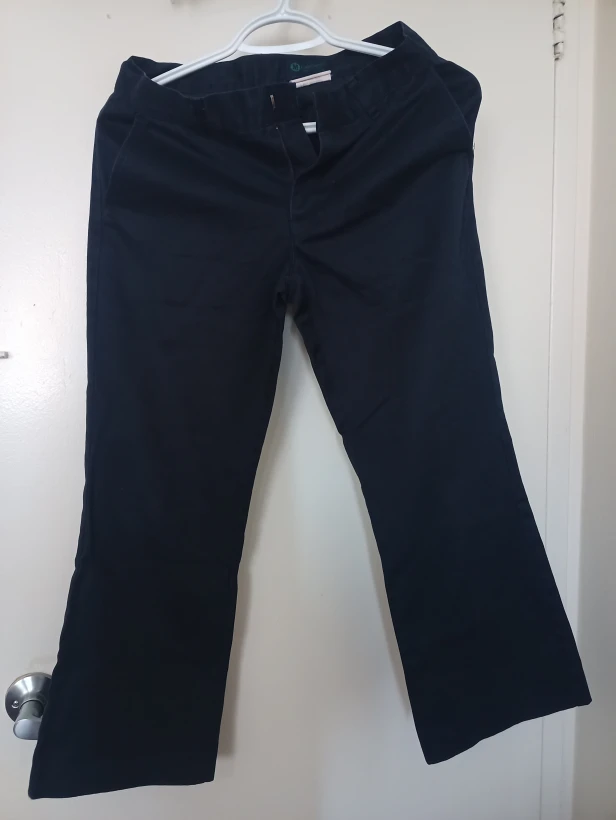 I'm selling a pair of navy blue trousers. They are in great condition and ready for a new home! They are a versatile colour and can be dressed up or down for any occasion