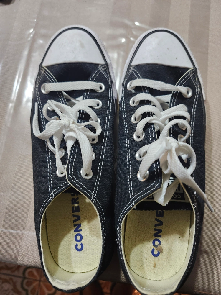 Classic black Converse All Star sneakers, ready for a new home! They've got that timeless look and are super comfy for everyday wear. Perfect for adding a bit of casual cool to any outfit