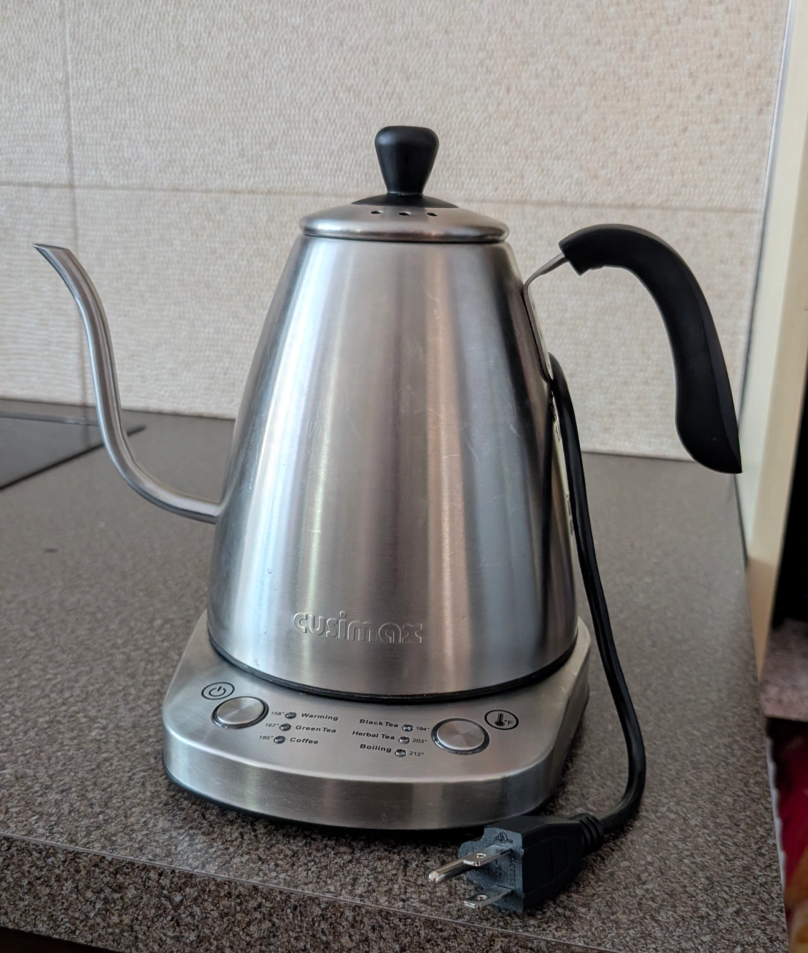 Selling a Cusimax electric gooseneck kettle. It's in great shape and ready to heat up your water for tea or coffee. Perfect for pour-over coffee or steeping your favourite tea leaves!