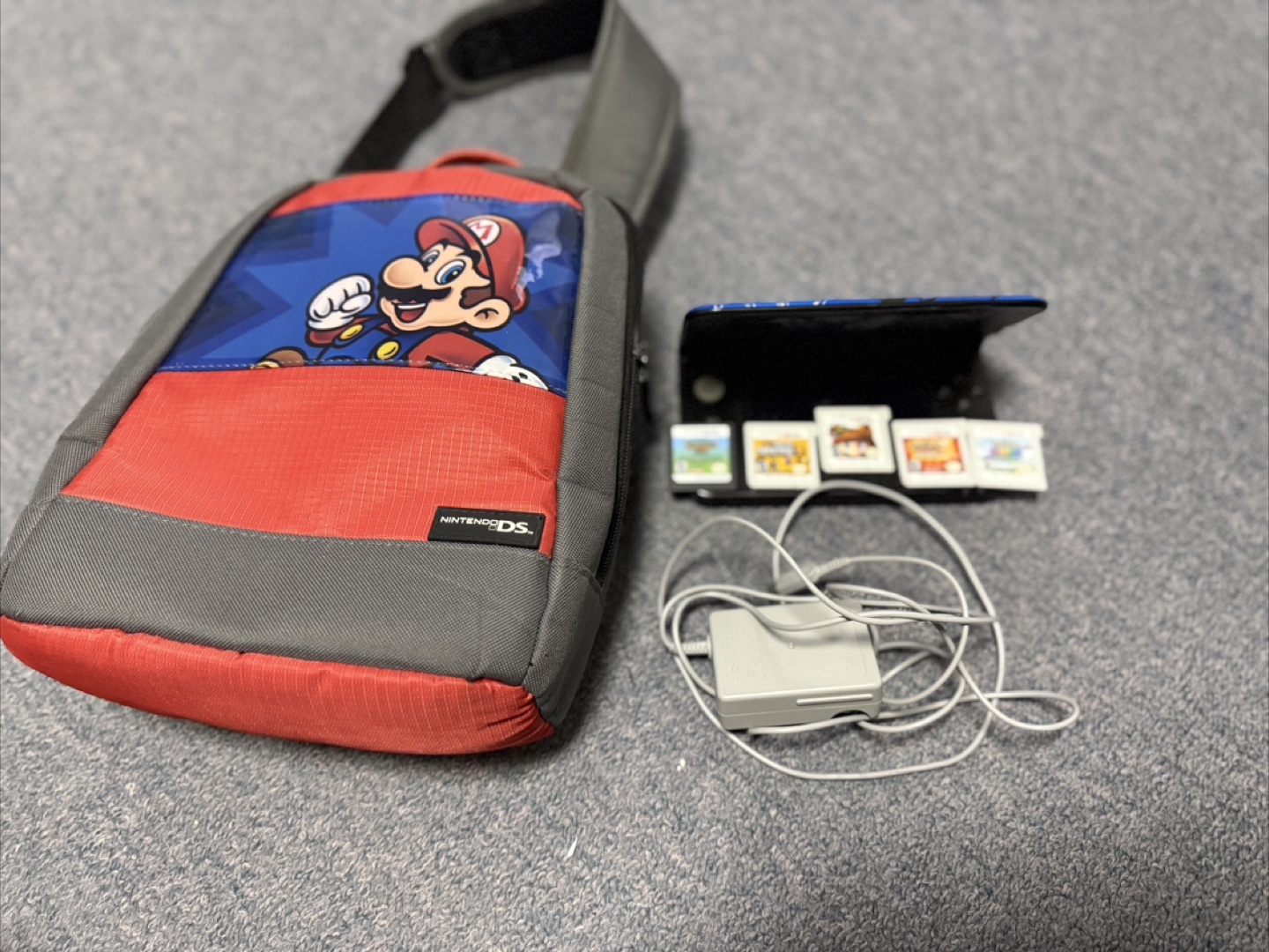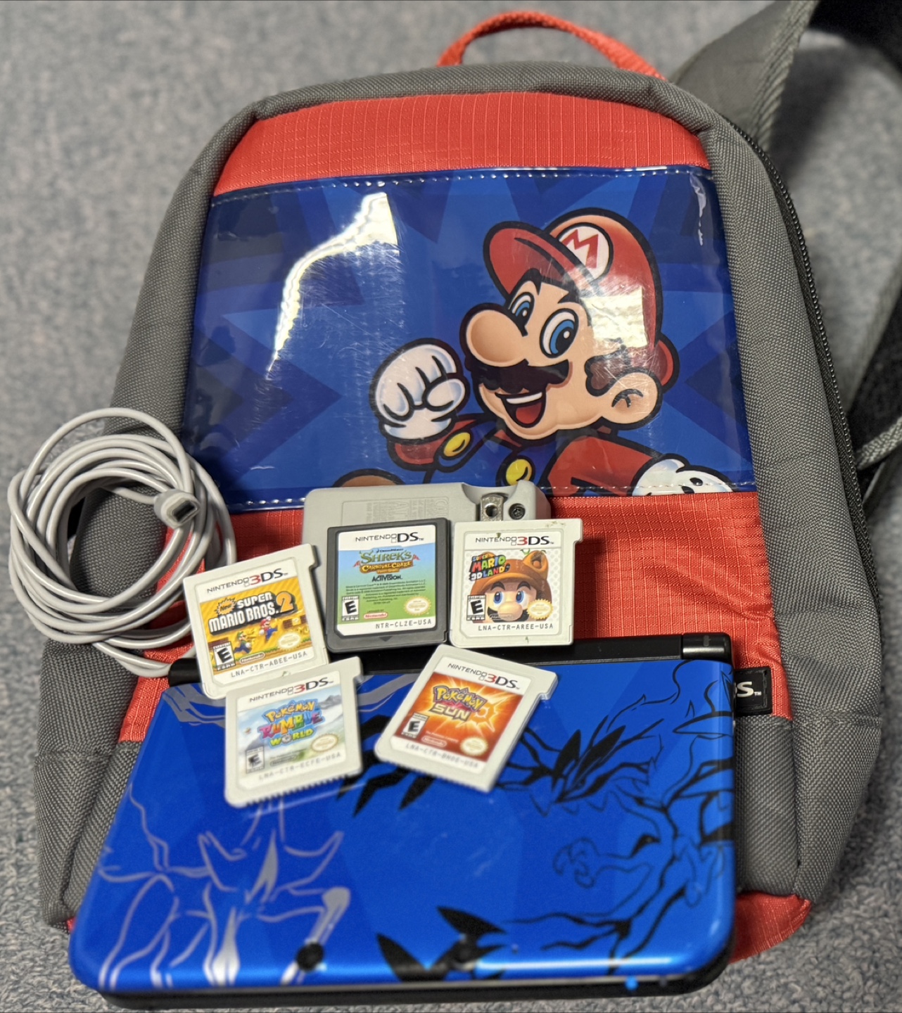 Selling a Nintendo 3DS XL with a custom design, along with a carrying case and several games. It comes with a charger as well. Great for some on-the-go gaming!