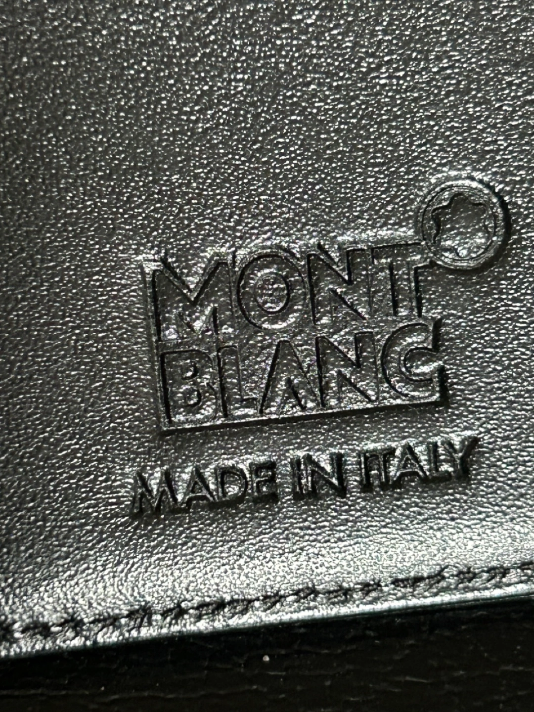 Selling a Montblanc black leather wallet. It's in great condition and has plenty of slots for cards and cash. The wallet is made in Italy.