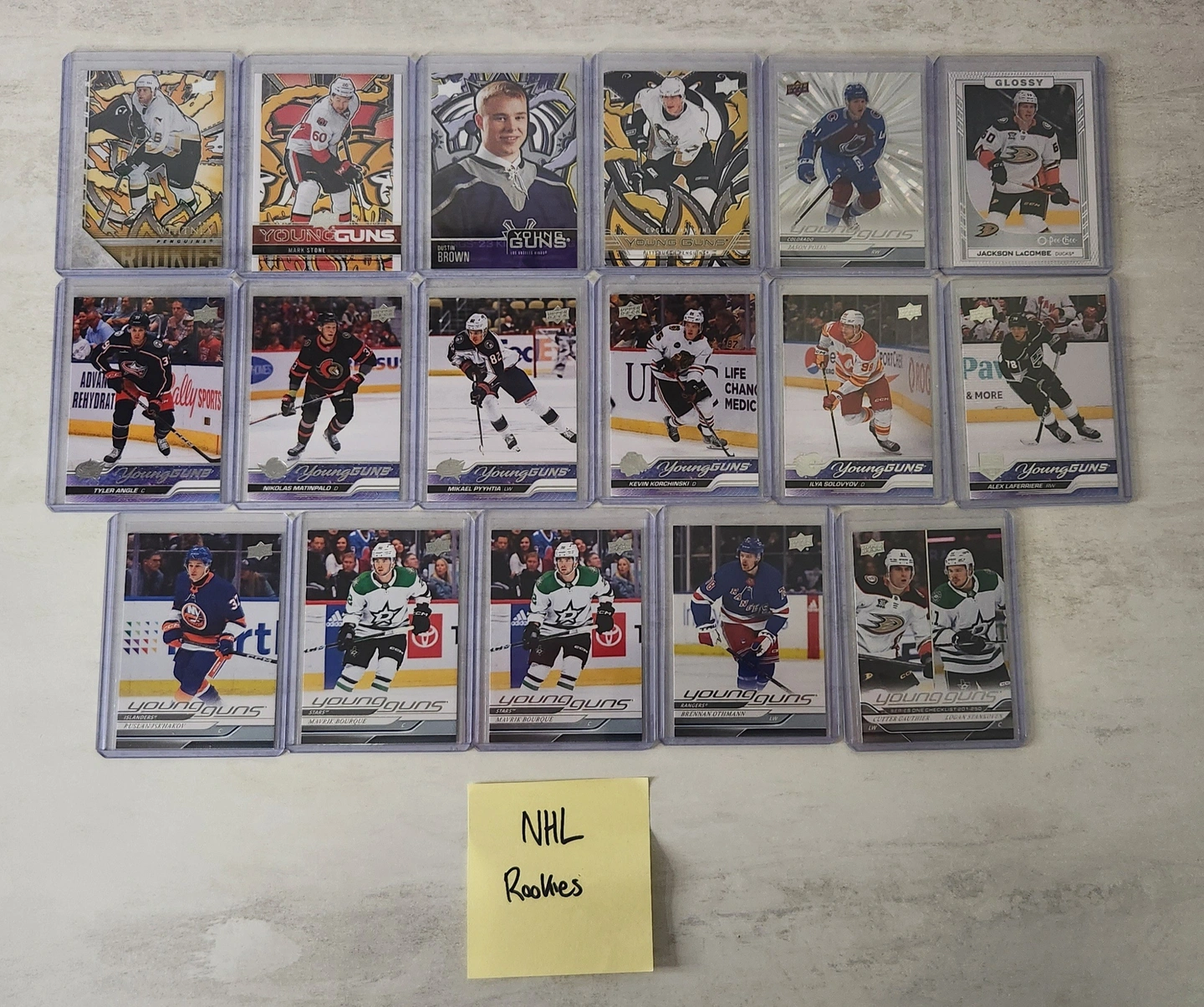 To give you an idea of the collection: The bomb squad JJ McCarthy rookie card is selling on eBay recently for $15. That might explode as he's the starting QB for the Vikings this year. Plus the market is down due to the off season. Madness how some of these cards skyrocket during the season. I also got a handful of $10 cards like a Malkin Young Guns Renewed Rookie, 2 Maverick Bourque Rookies, etc.