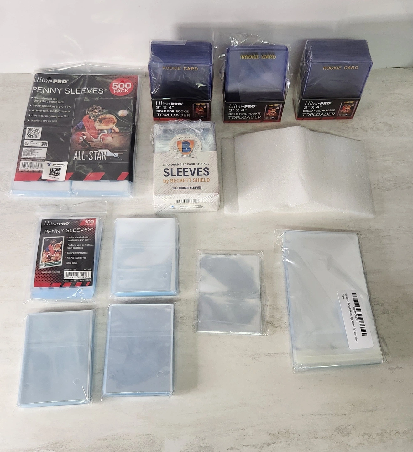 BUT WAIT, there's MORE: 50+ rookie card top loaders (worth $30), 850+ penny sleeves (with cards already sleevedβ$10 value), 45 Beckett shields ($10), 60+ resealable bags ($10), a BRAND NEW 5-row card box ($40) + 2 extra single boxes! Accessories alone = $75+ stealβlocal shops charge WAY more! Everything for $150 FIRM. Perfect starter kit to crush the hobby without breaking the bank. Who's ready to flip, trade, and win? Grab it now before it's gone! ππ₯