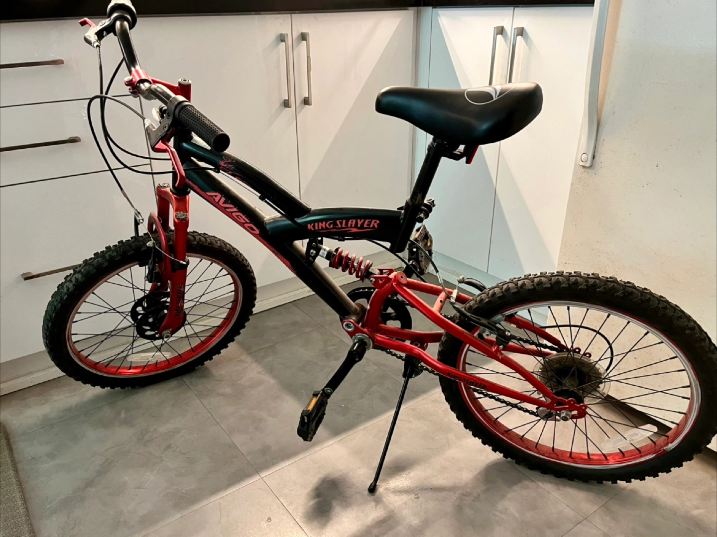 Selling a 20-inch wheel Avigo King Slayer bike in a striking red and black colour scheme. It's a sturdy and reliable ride, perfect for kids or young teens.
