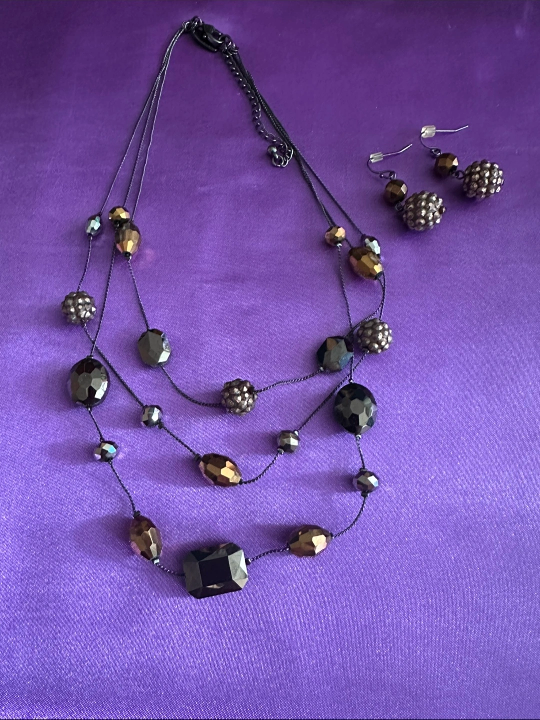 Beautiful three-strand layered necklace with matching earrings.