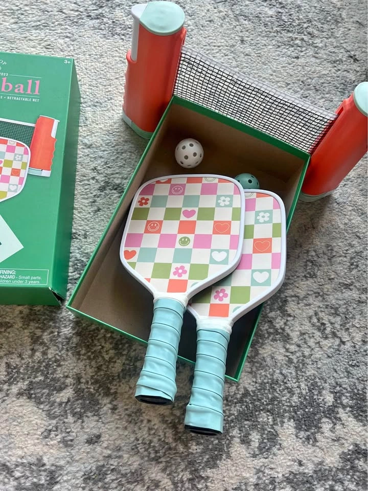 Great condition - super cute bright happy mini pickleball set for tabletop. Great for summer bbqs etc, just don’t have a need for it anymore. Purchased for $60