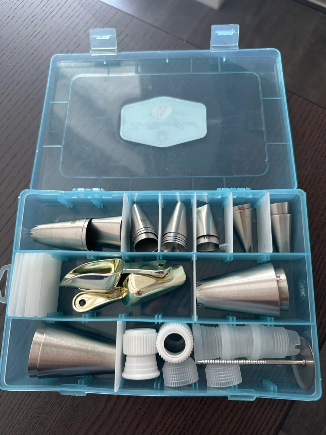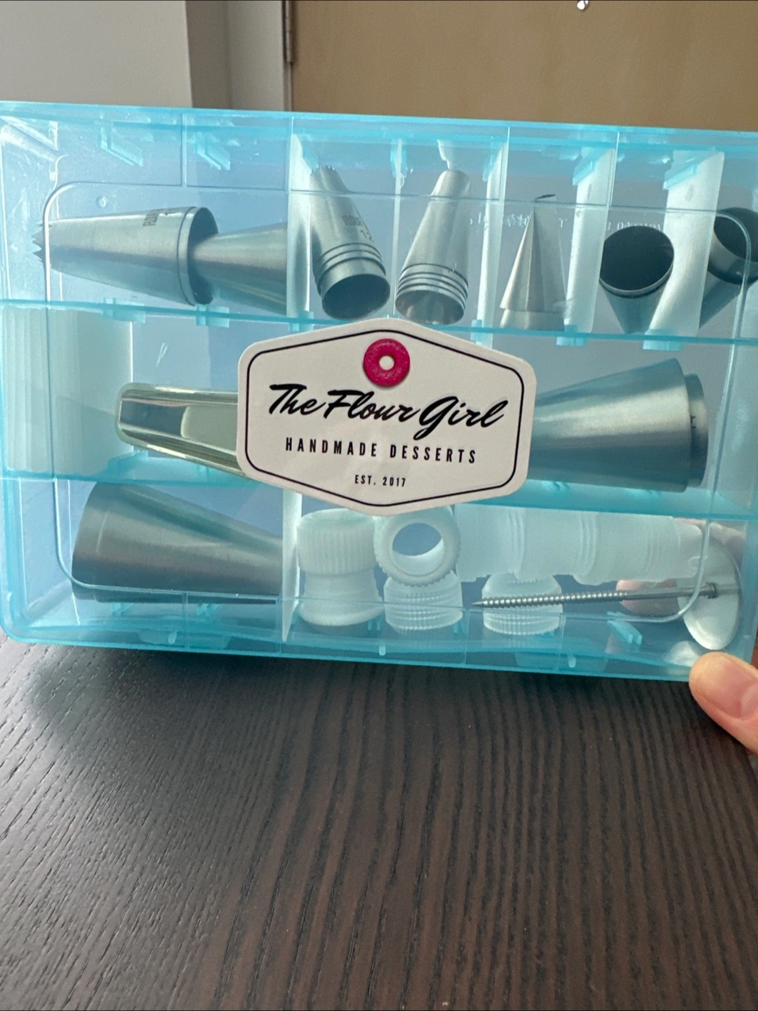 Selling a dessert decorating kit from The Flour Girl! It has a variety of tips and accessories to help you create beautiful desserts. Perfect for baking enthusiasts or anyone looking to add a special touch to their treats