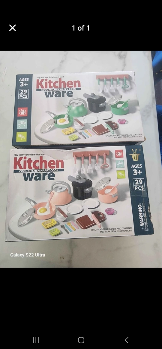 Selling a Kitchen Ware toy set, perfect for little ones aged 3 and up! The set includes 29 pieces for hours of imaginative play. Get ready for some cool kitchen, happy cook adventures!