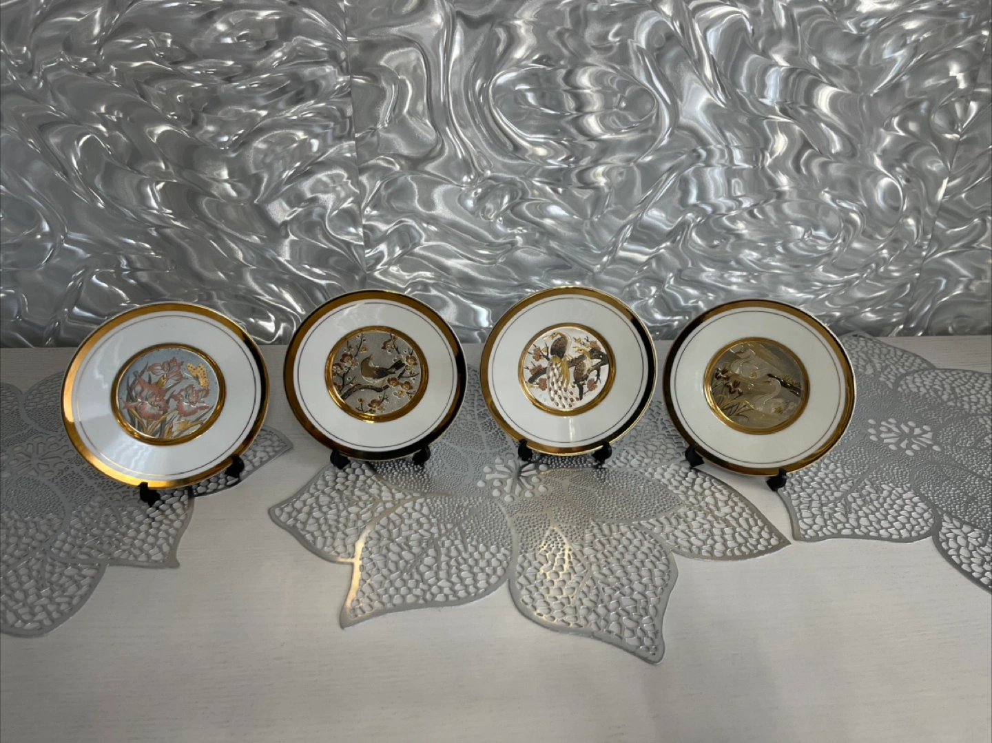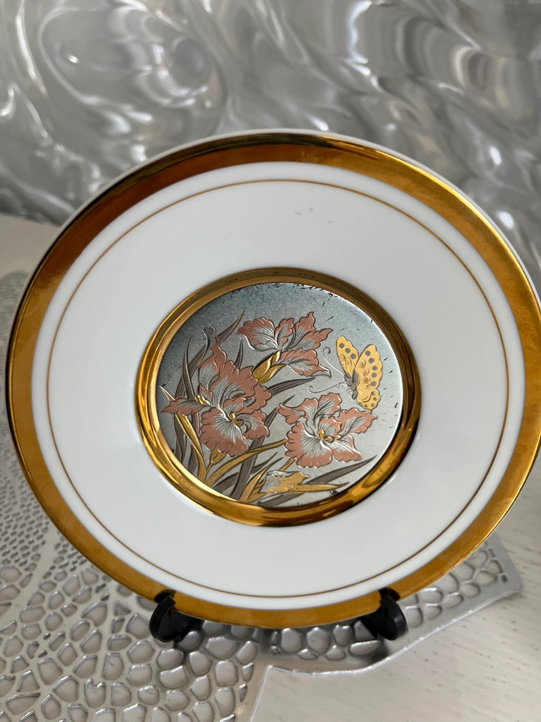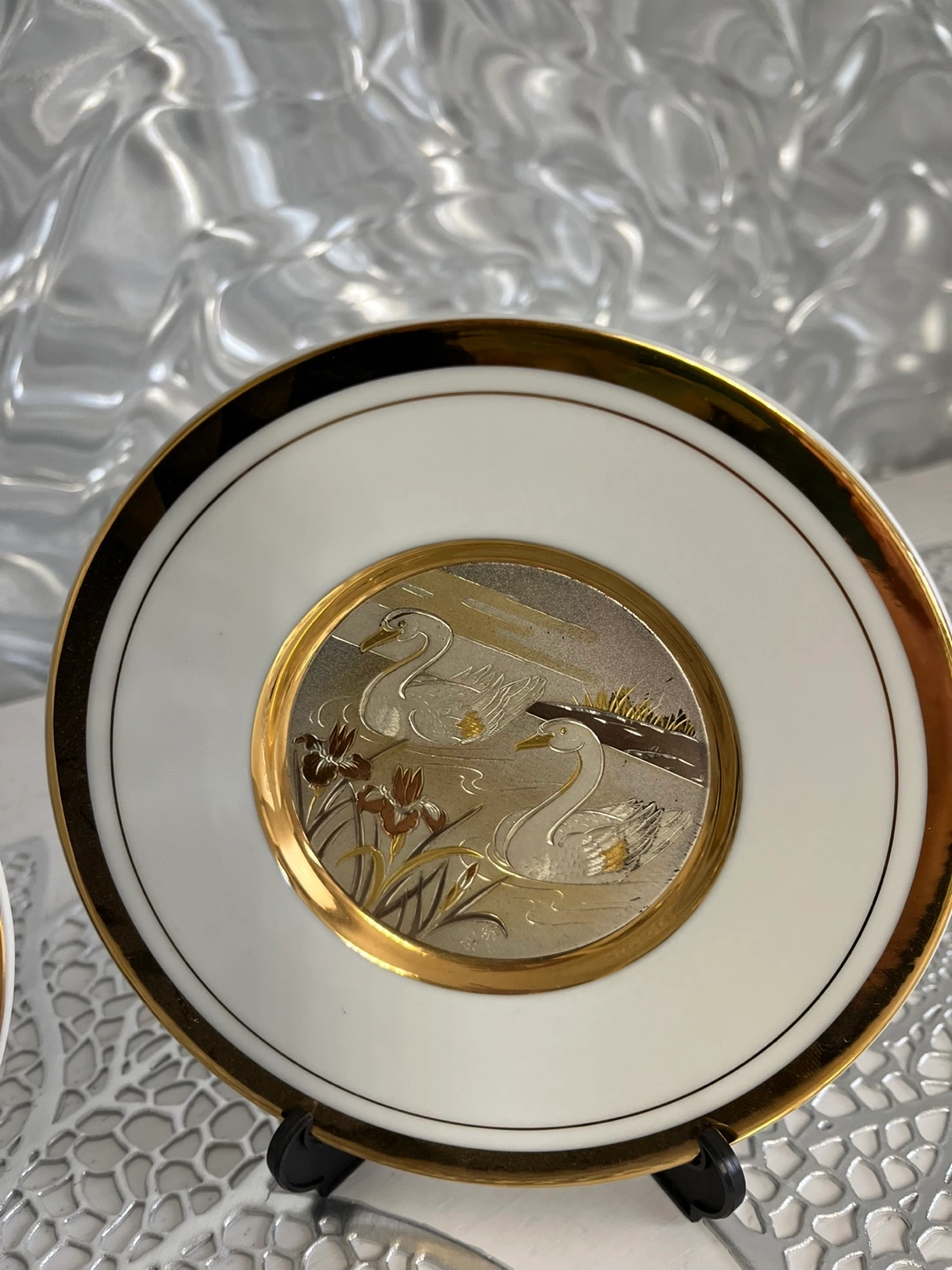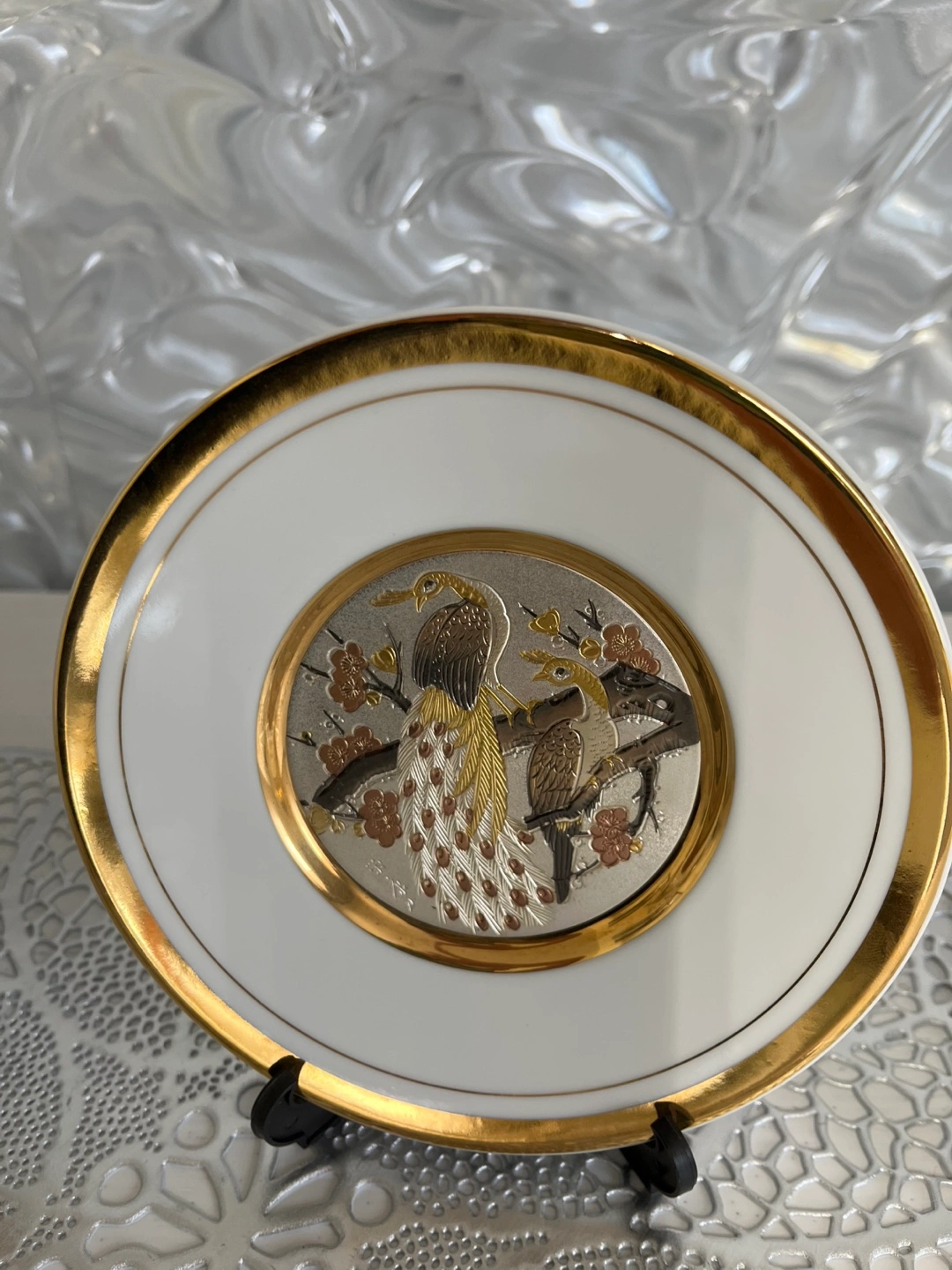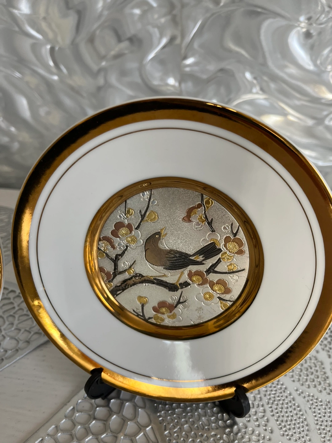 These decorative plates feature beautiful bird and floral designs with a gold trim. They would make a lovely addition to any home decor made with real gold extremely rare.