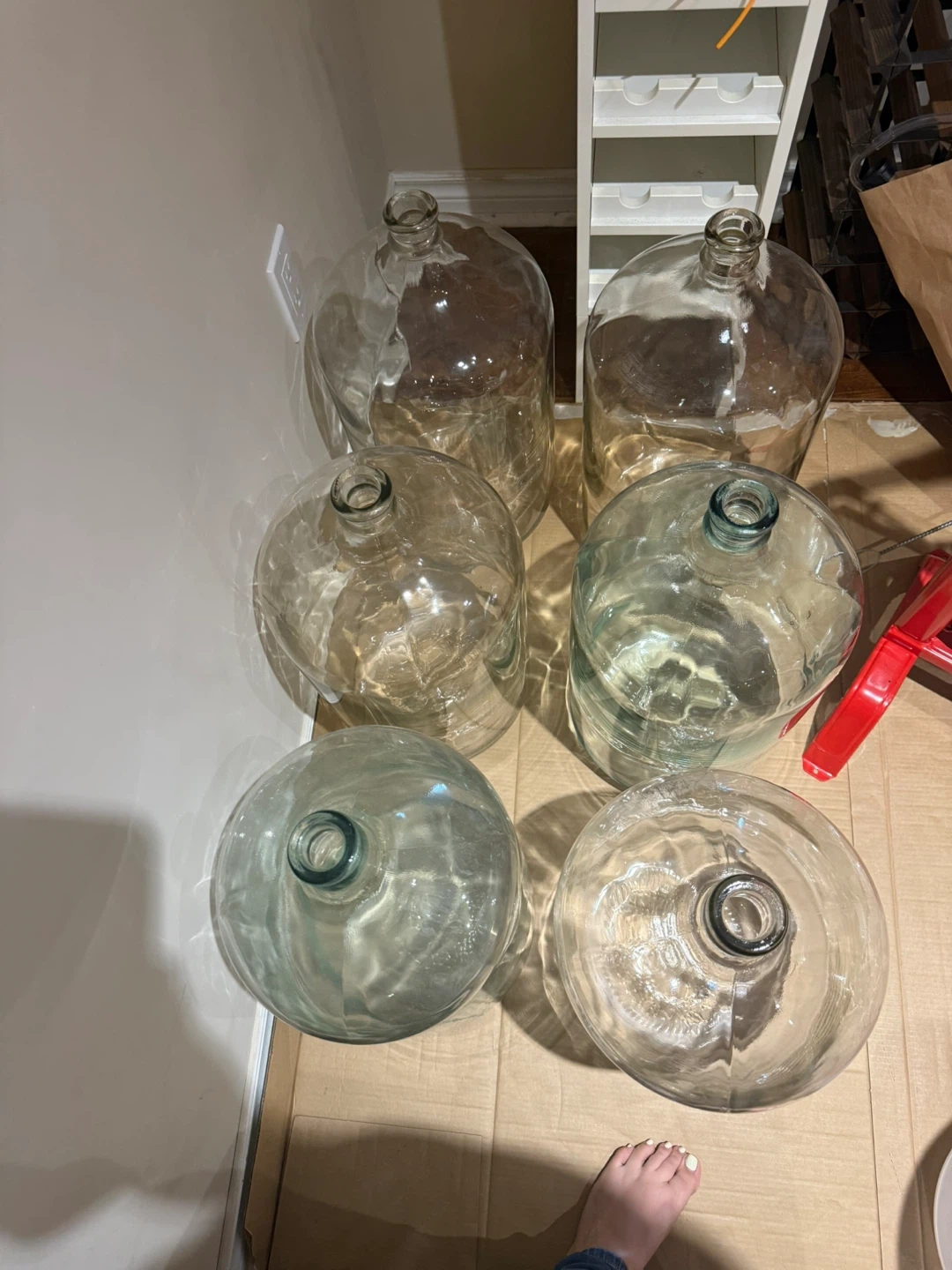 I'm selling a collection of three, 23-liter (6-gallon) glass carboys, perfect for wine or beer making. In excellent condition
