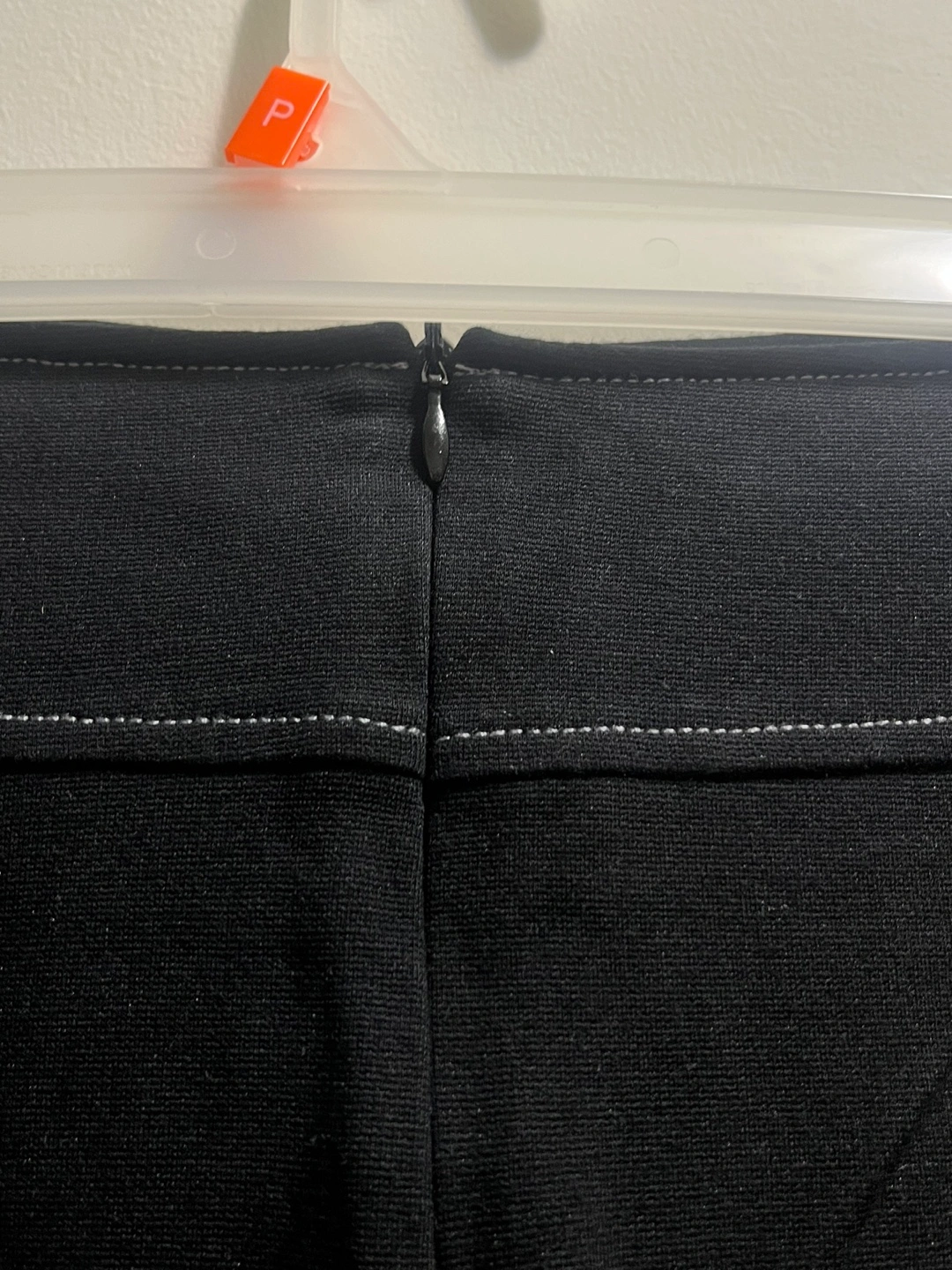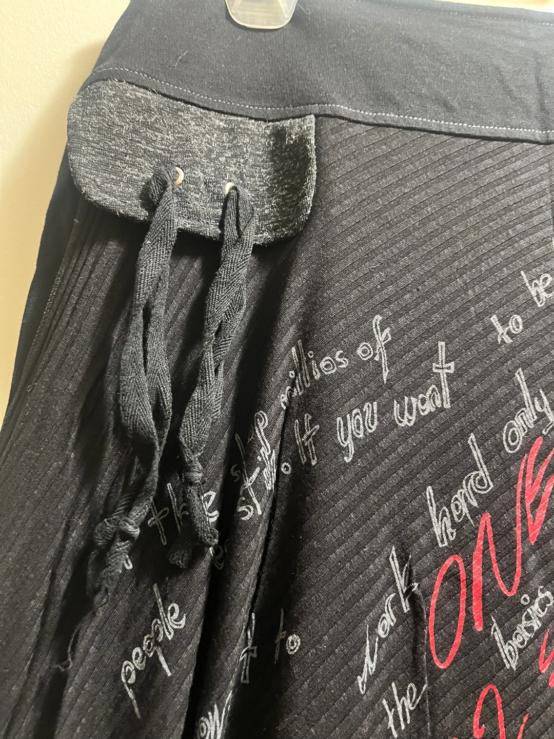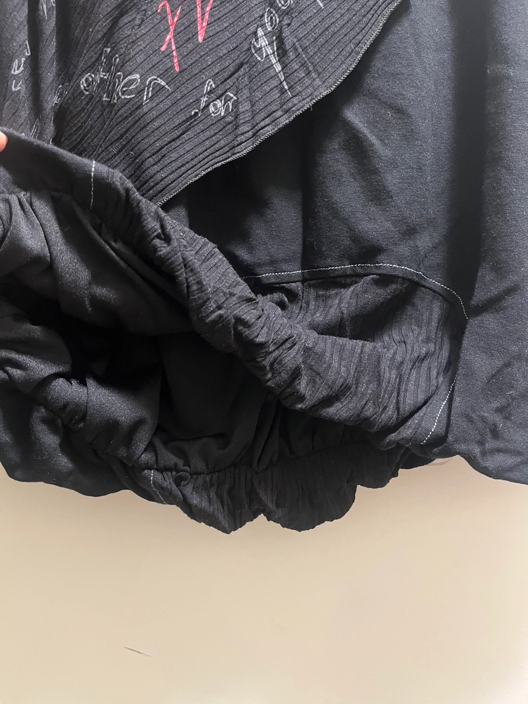 Like new condition, just been stored away Pickup Brampton or downtown Toronto Chic black skirt with unique asymmetrical design. Features bold red and subtle gray accent writings. Perfect for a standout look. No pockets, just a design Back has a zipper down the middle Approximate measurements: Waist 16.5”-17” Length 26” —BinB9-04—