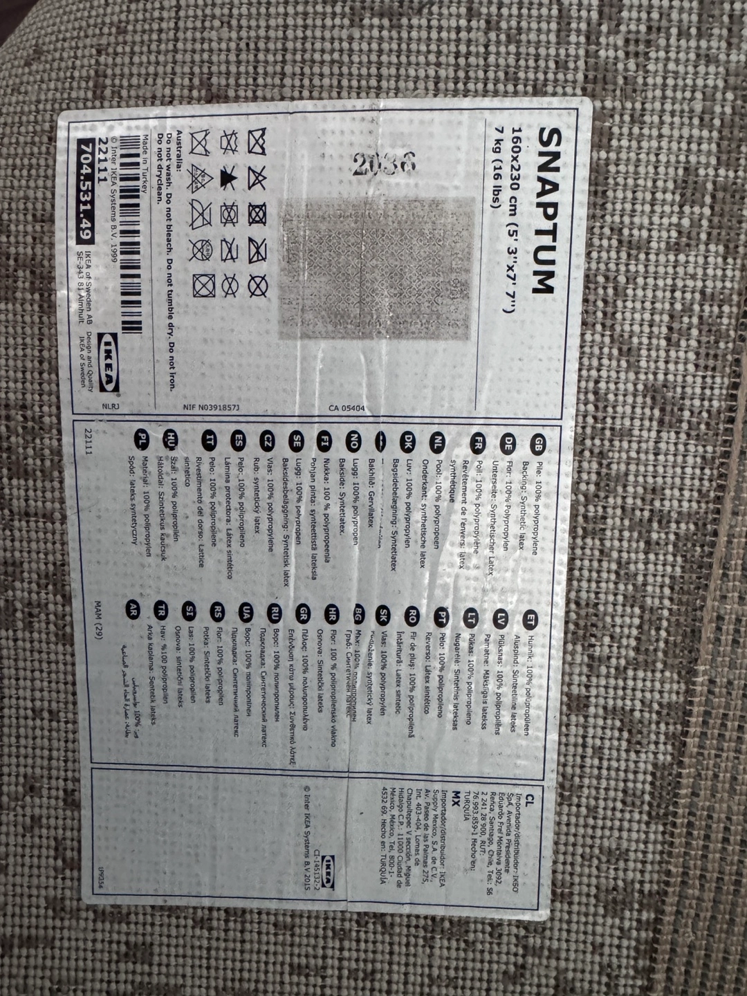 628IKEA SNAPTUM Rug Dimensions: 160x230 cm (5’3” × 7’7”) Weight: 7 kg • Stylish and modern design and color, suitable for all types of decor • Material: 100% polypropylene (high durability and resistance) • Clean and healthy, only has a small stain that is visible in the photo • Lightweight, easy to move . Delivery time August 20