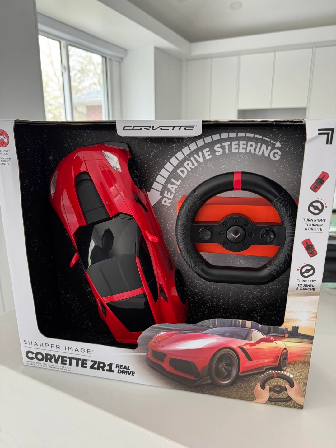 Selling a brand new Sharper Image Corvette ZR1 Real Drive! It's still in its original box, ready for a new home. This cool toy features real drive steering for an immersive experience. Grab the wheel and enjoy the ride!