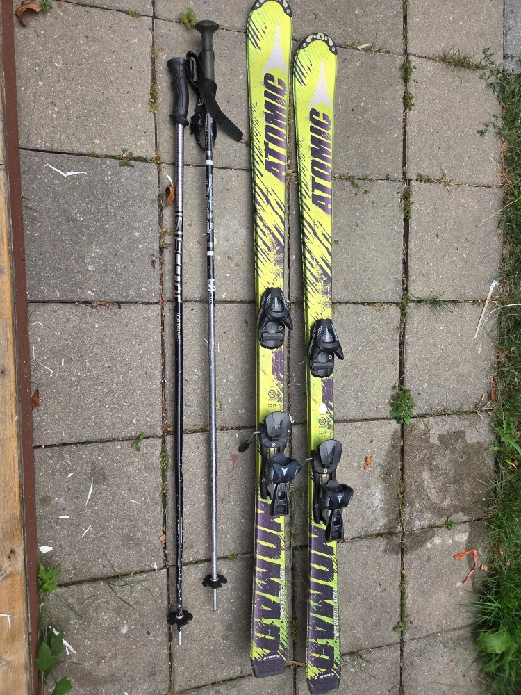 Selling a pair of Atomic skis that are in good condition and ready for the slopes! They are 59 inches long and come with a set of poles, so you'll have everything you need to hit the mountain