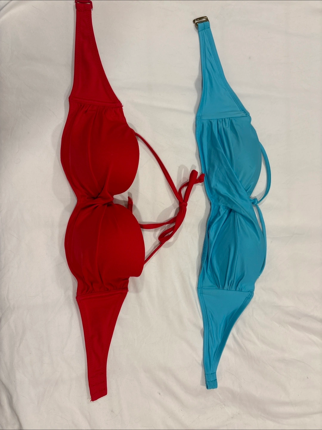 Selling two strapless bikini tops! One is from Old Navy and the other is from Mossimo. Both are in great condition and ready for summer. The Old Navy top is red, and the Mossimo top is light blue. Guessing they fit 34-36 C-D (red) and 34-36 B-C (blue). $5 each.