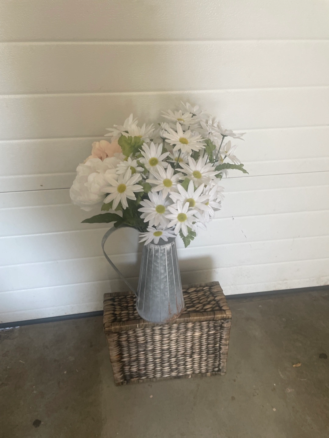 Add a touch of rustic charm to your home with this galvanized metal pitcher vase! It's perfect for displaying flowers or as a standalone decorative piece