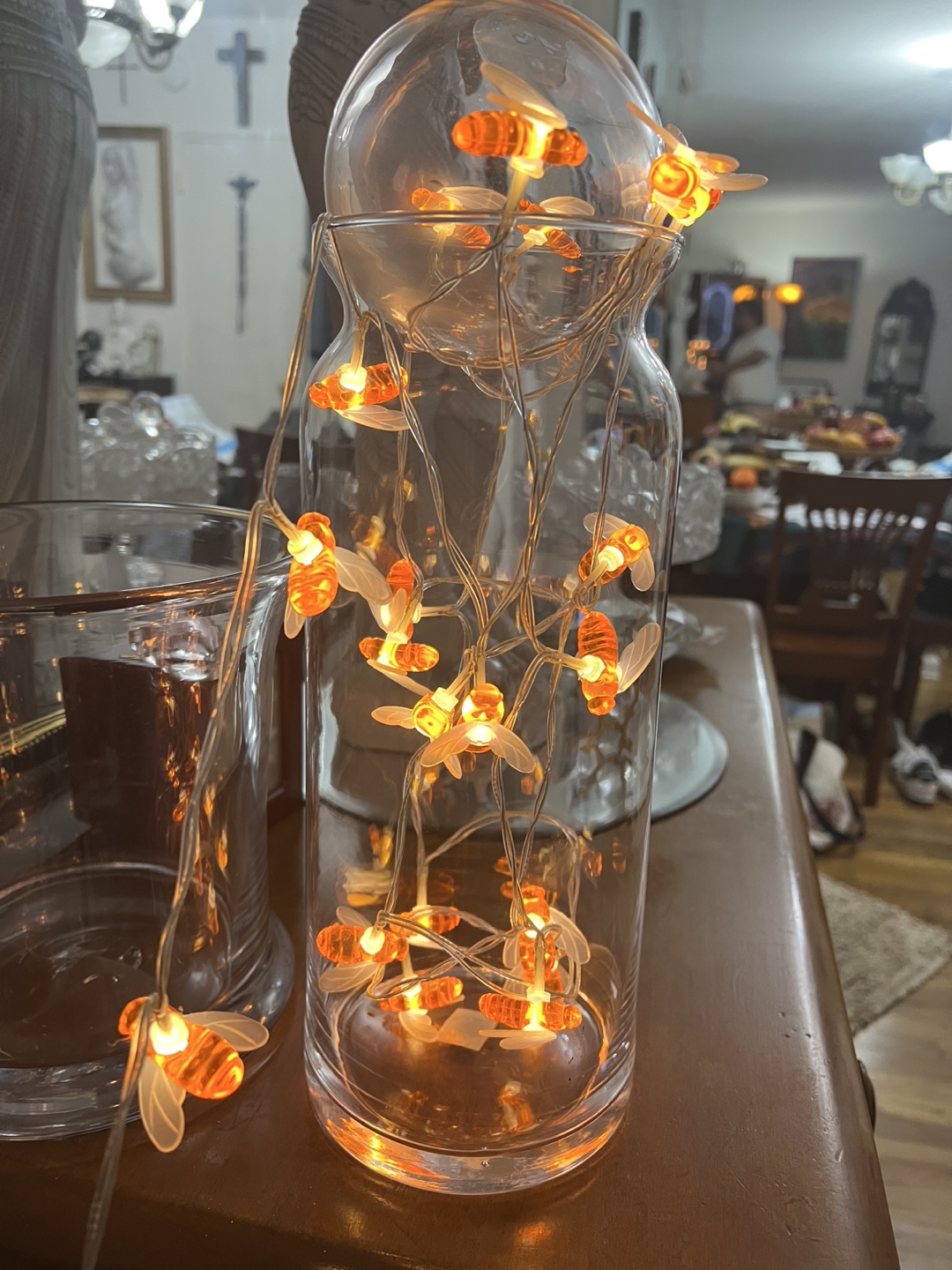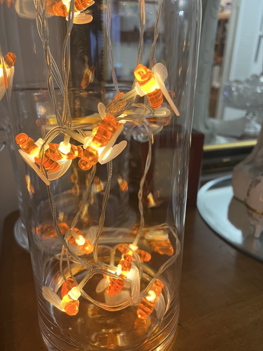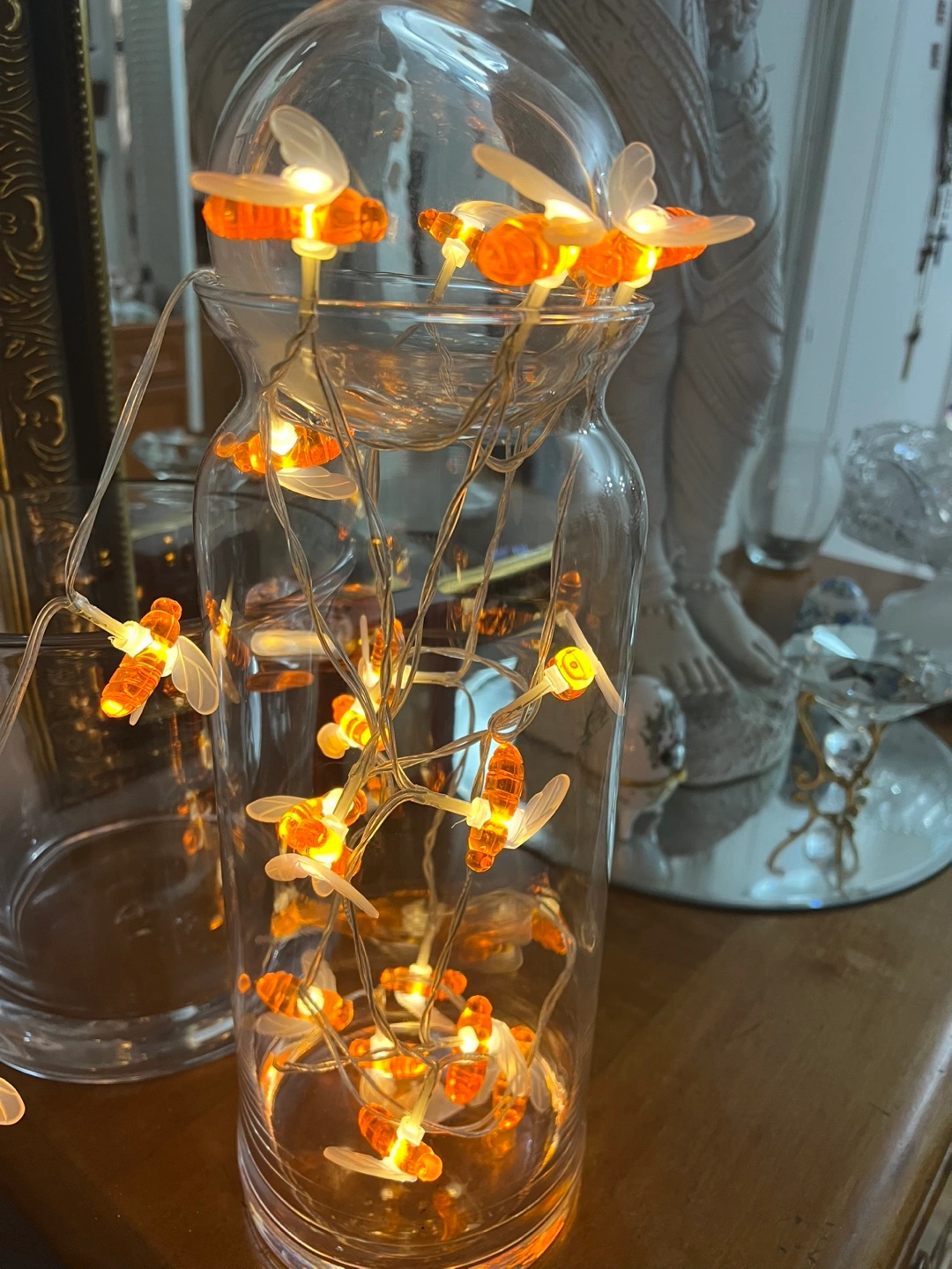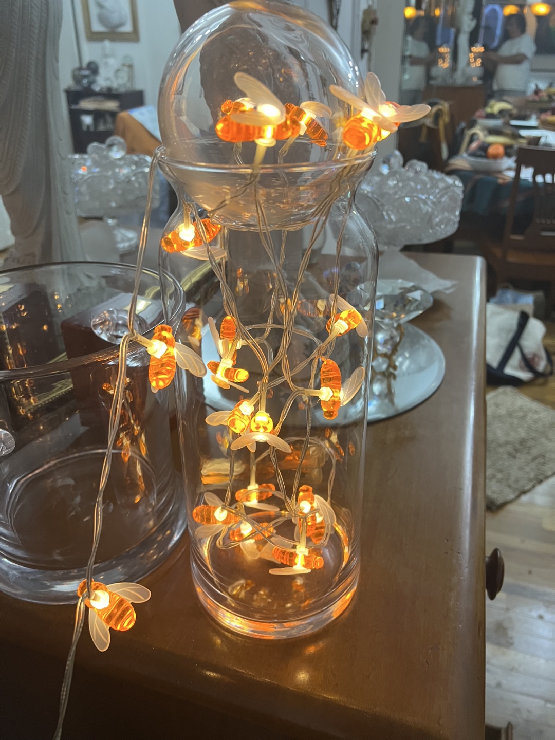 Bee String Lights -with ball glass on top in vase glass