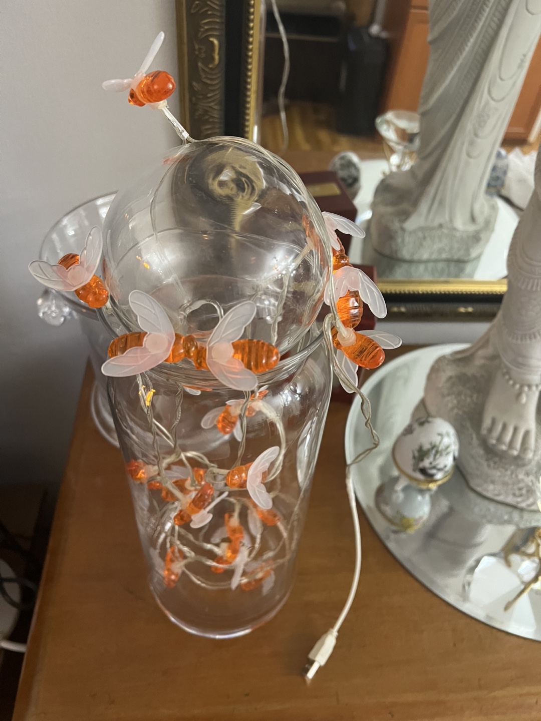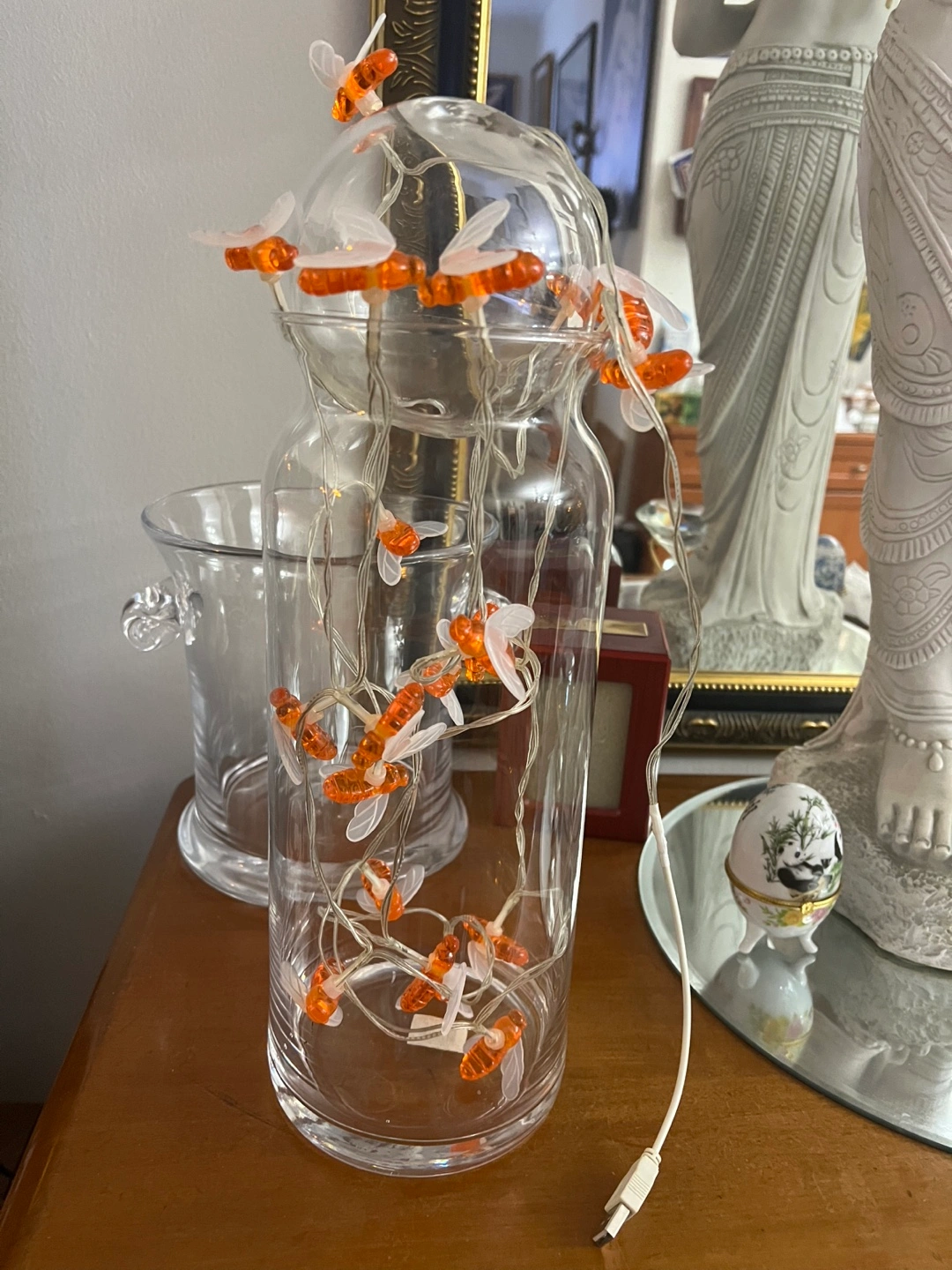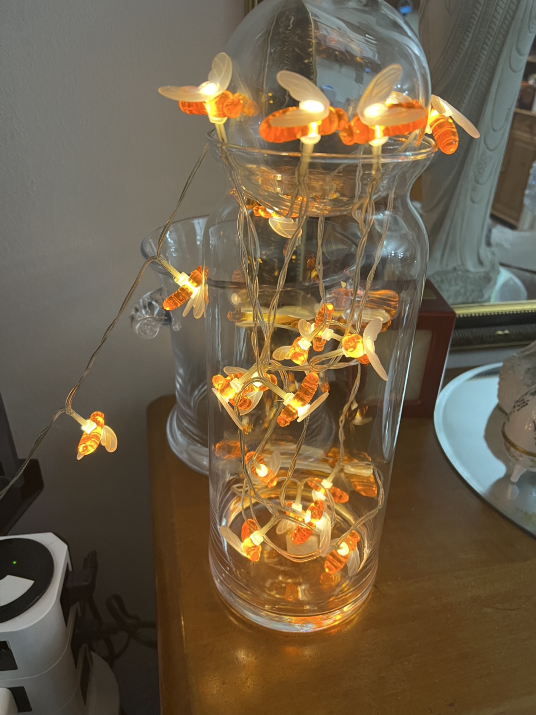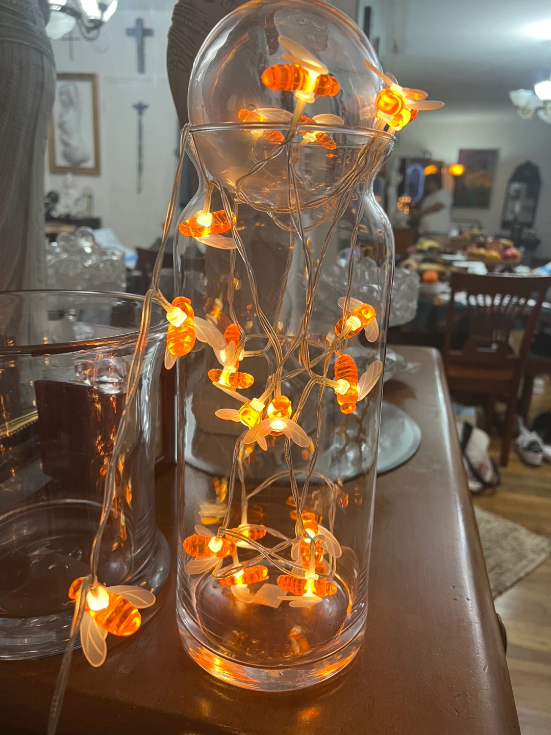Bee String Lights -with ball glass on top in vase glass