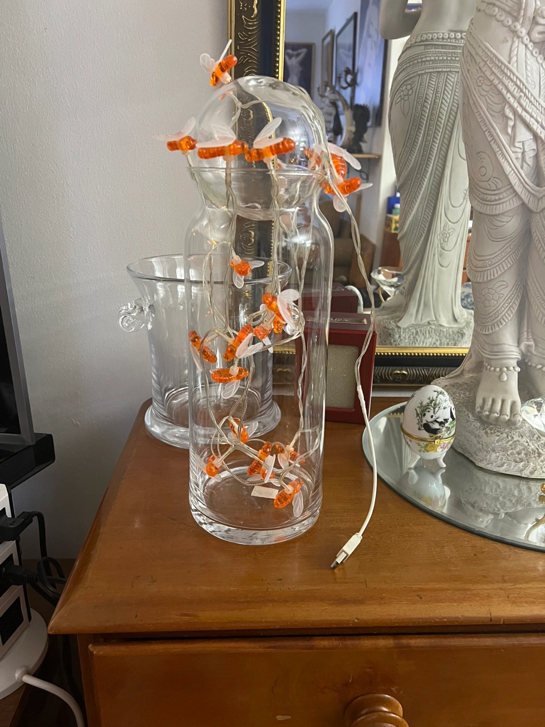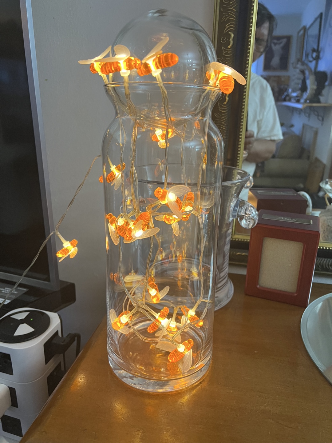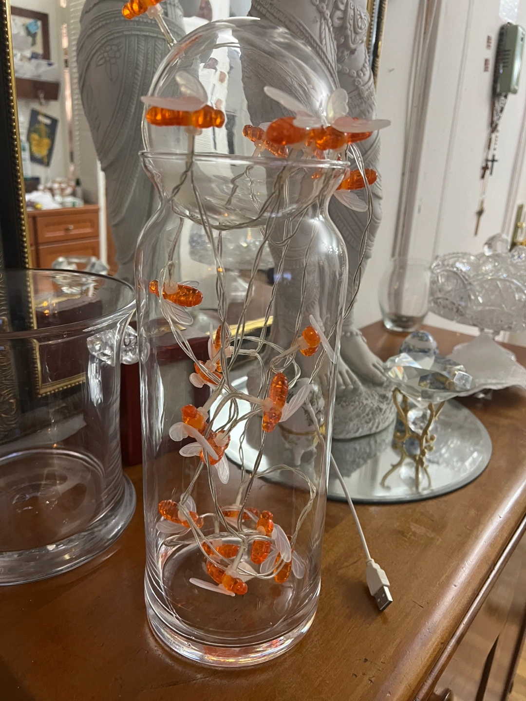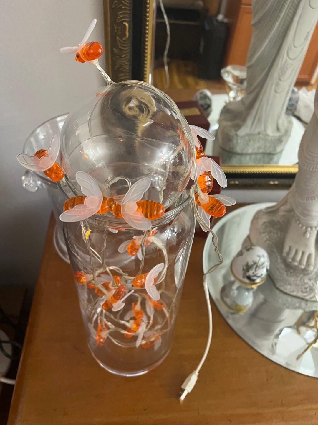 Bee String Lights -with ball glass on top in vase glass