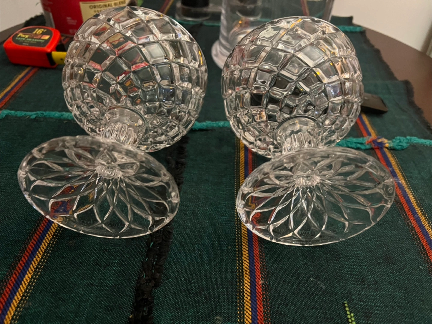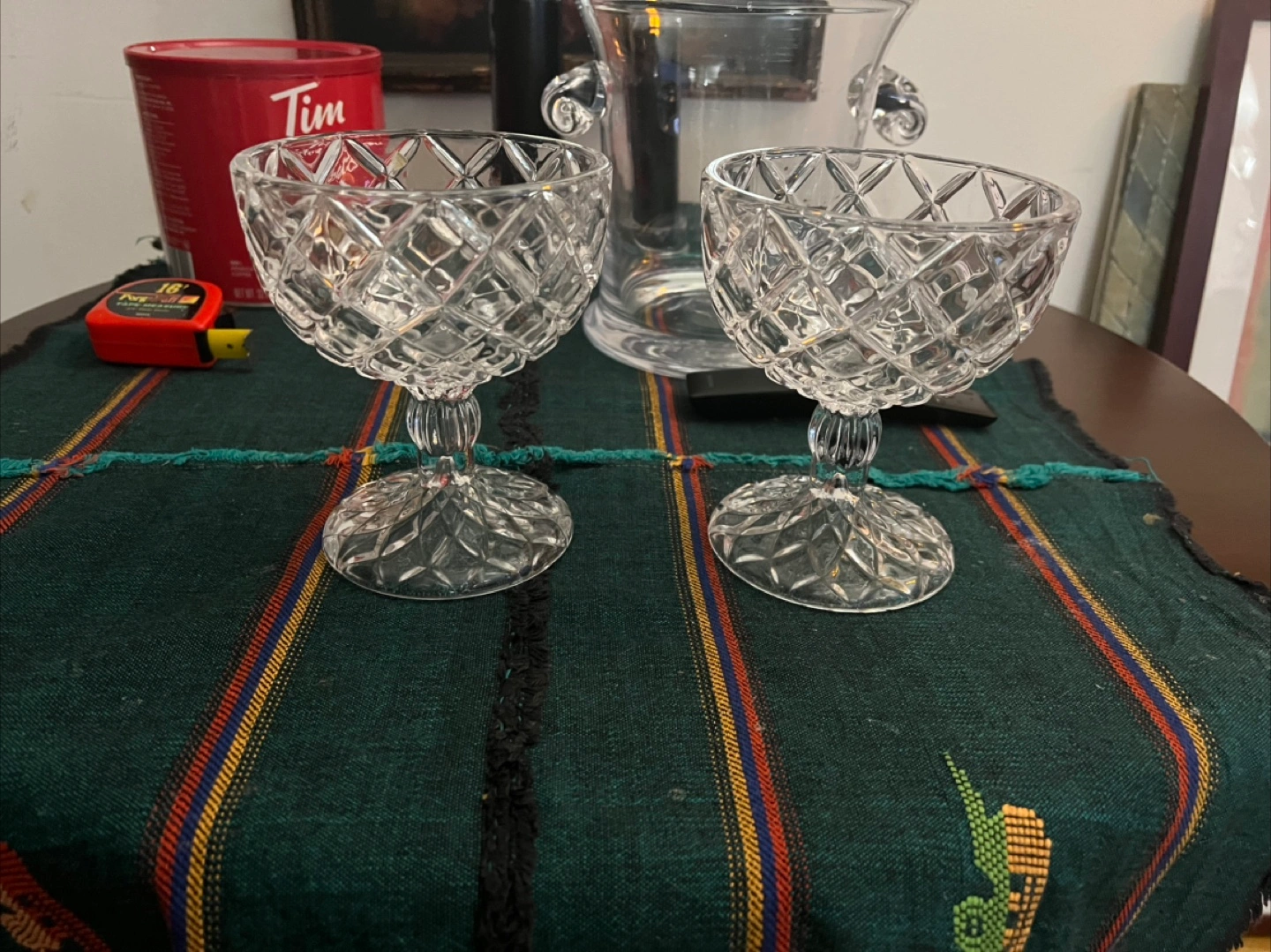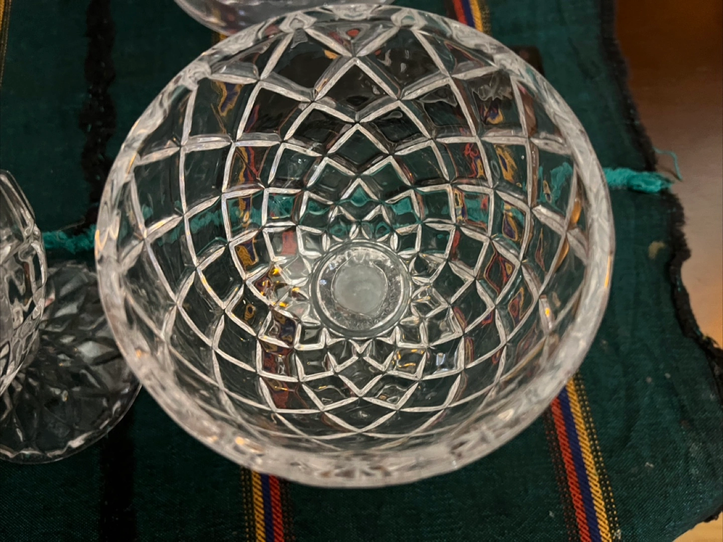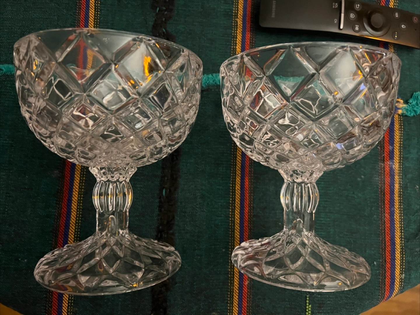 Selling a vintage set of two beautiful cut crystal dessert or candy They feature an elegant diamond-cut pattern and a sturdy base. Perfect for adding a touch of sophistication to your table setting!