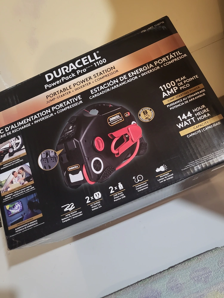 Selling a brand new Duracell Powerpack Pro 1100 portable power station! It's a jump starter, inverter, and compressor all in one.