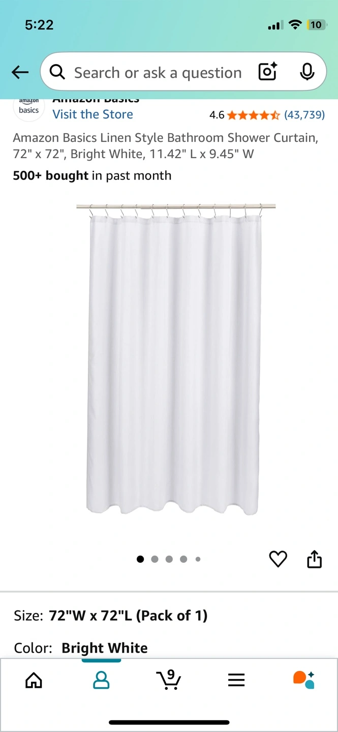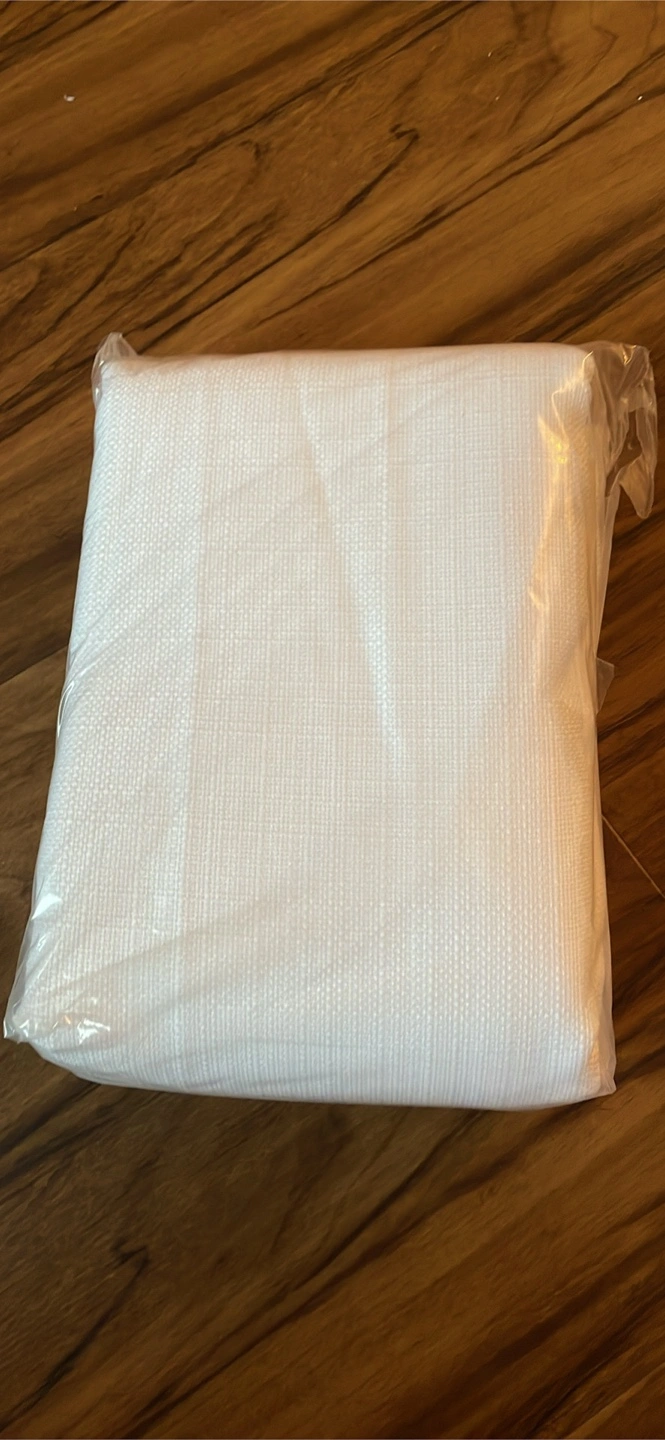 Selling a new Amazon Basics linen style bathroom shower curtain in bright white! It's 72" x 72" and still in the original packaging