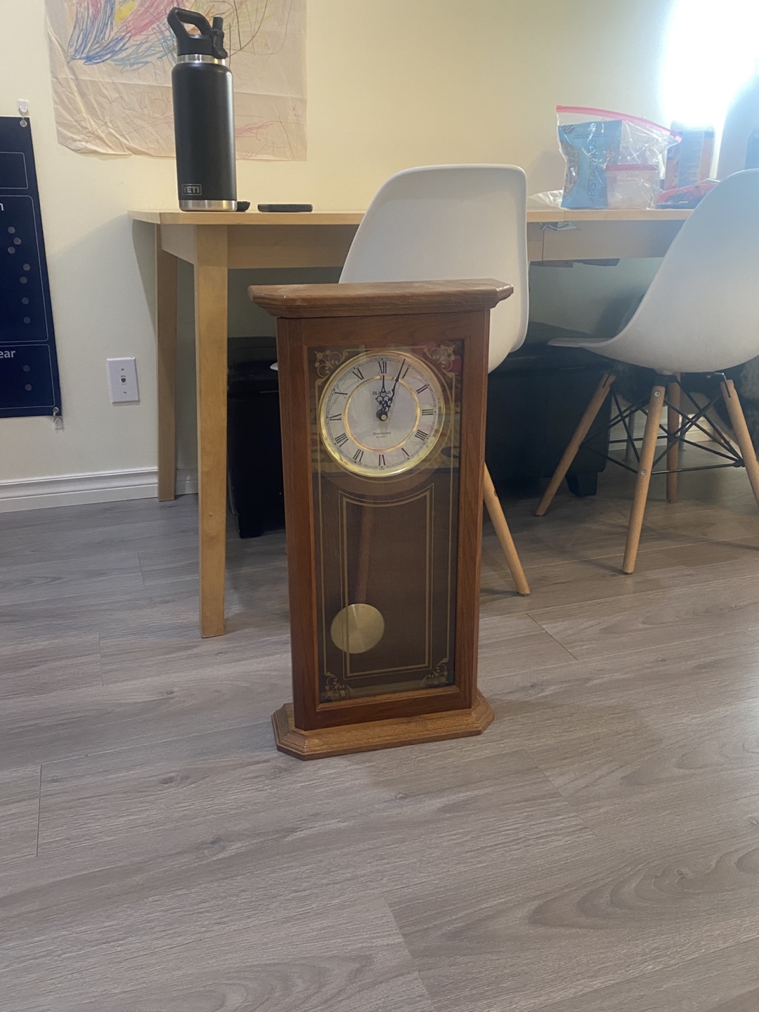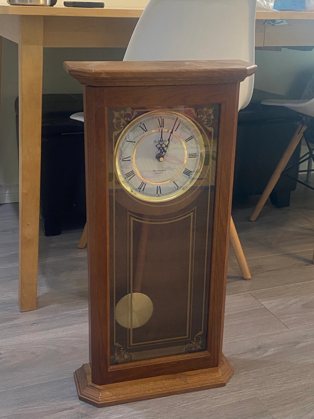 Selling a beautiful Bulova grandfather wall clock. It's in great condition and would look lovely in any home. The clock features a traditional design with a pendulum. The wood finish gives it a warm and classic feel. It's a great way to add some elegance to your decor!