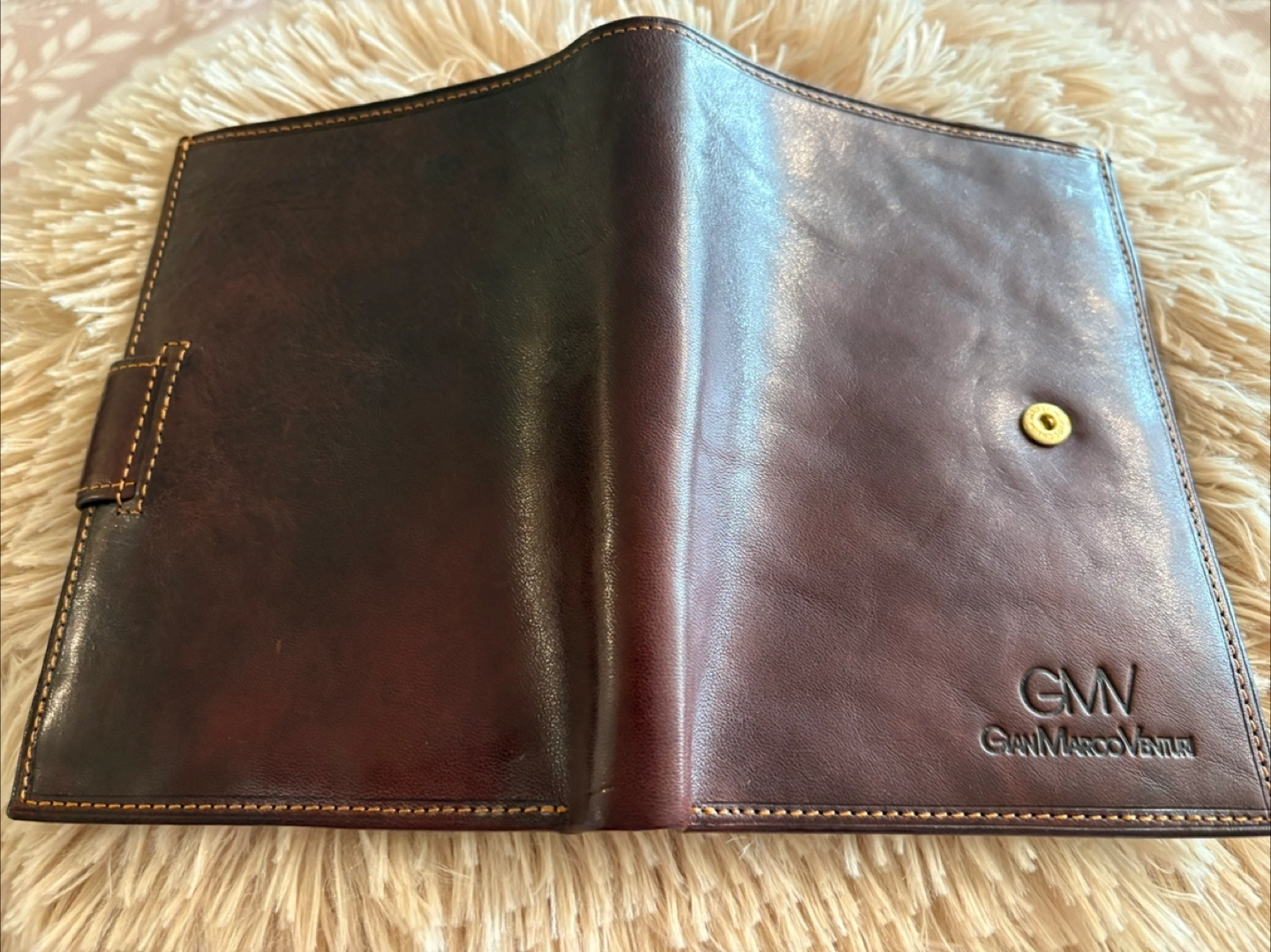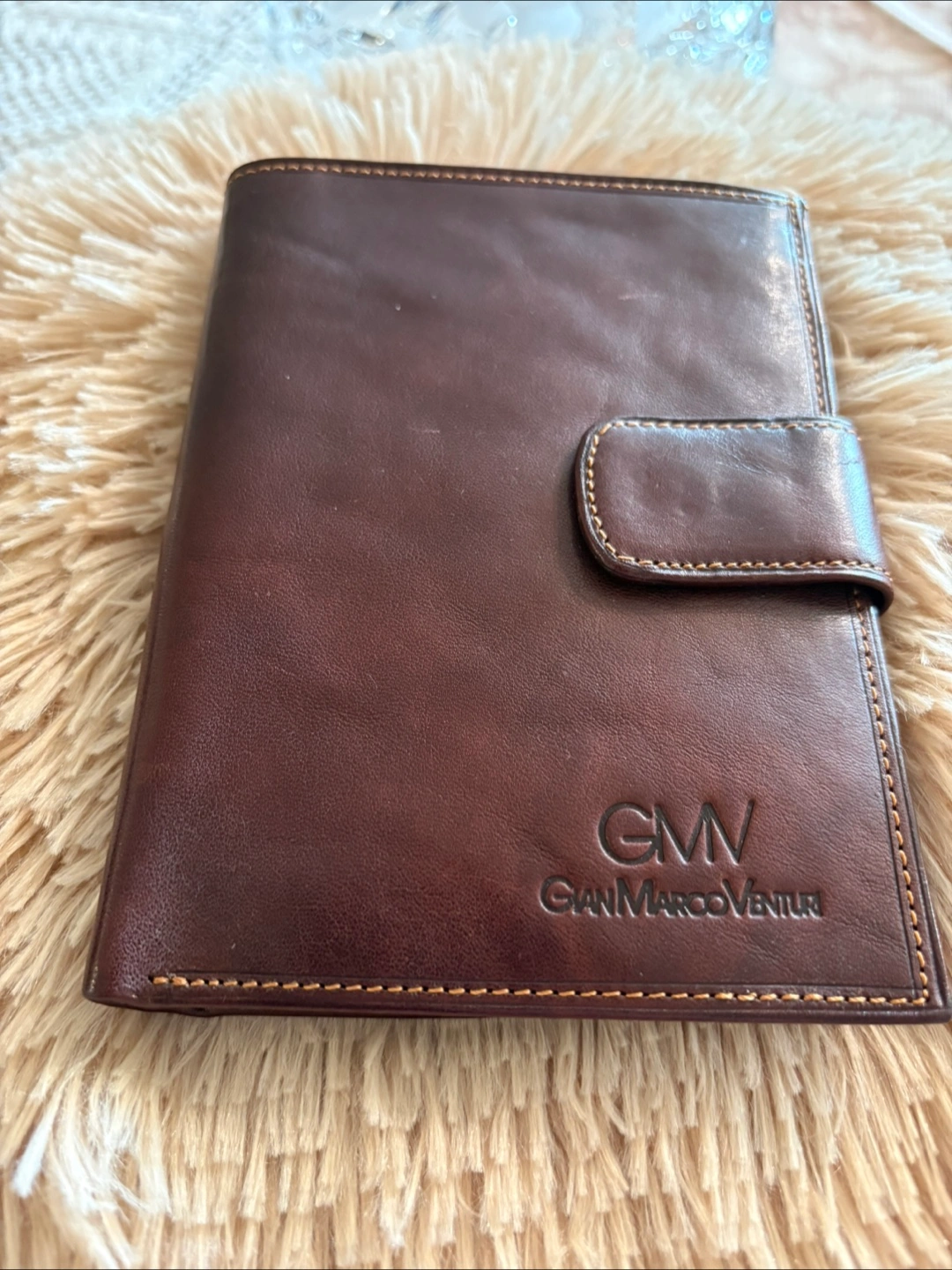This is a brand new GianMarcoVenturi Leather Wallet, model GMV-408. This stylish wallet features a rich, dark brown leather exterior with the GMV logo subtly embossed. Inside, there are multiple card slots, a zippered compartment, and ample space for organizing your essentials. It is in great condition and ready for a new home. It’s a beautifully crafted piece that combines functionality with a touch of class.