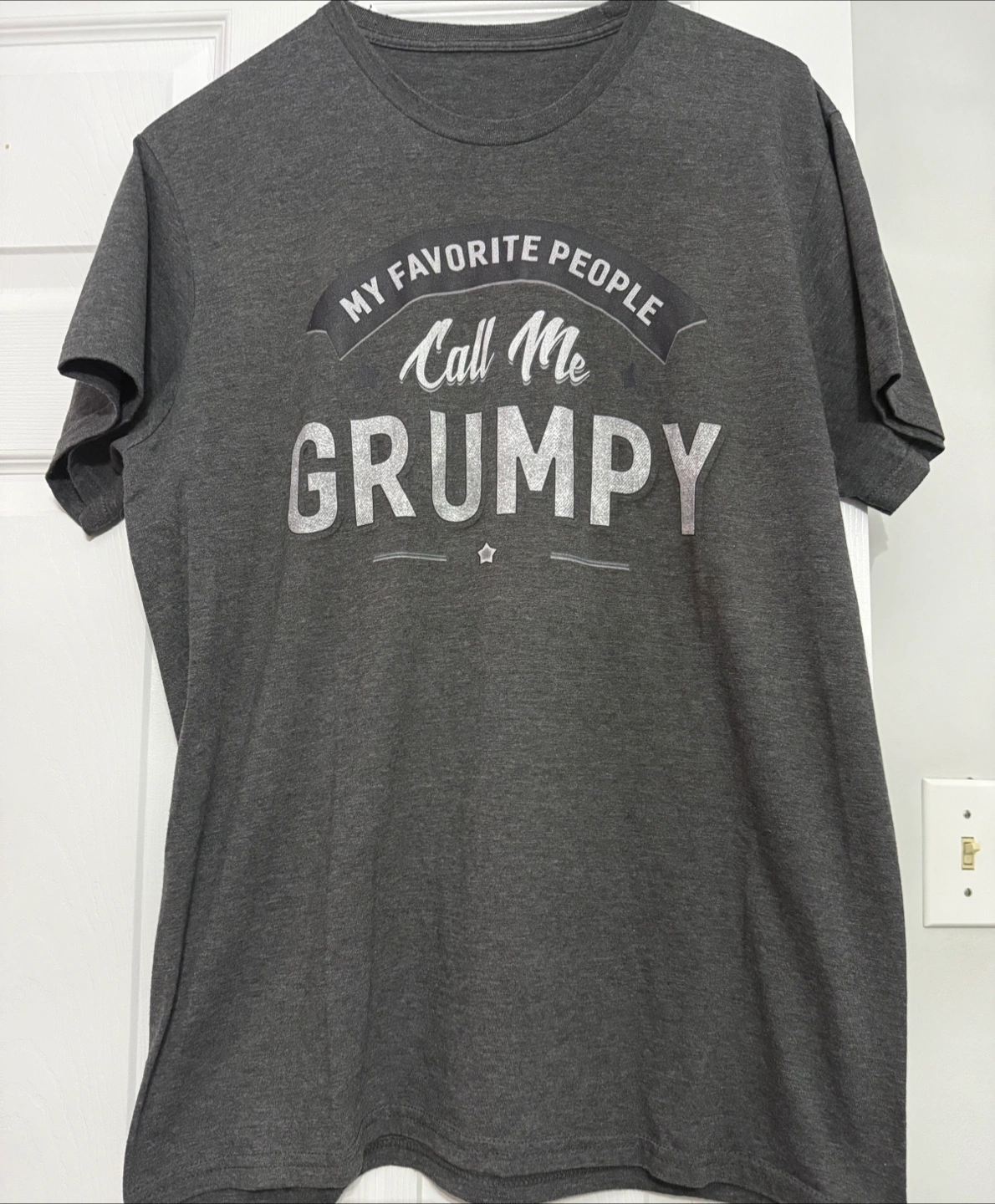 Selling a Gildan graphic tee with "My Favorite People Call Me Grumpy" on the front! It's a size large and made of 50% cotton and 50% polyester. In great condition!