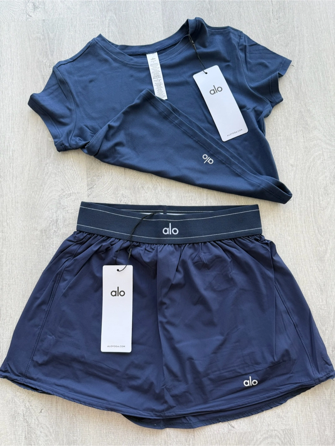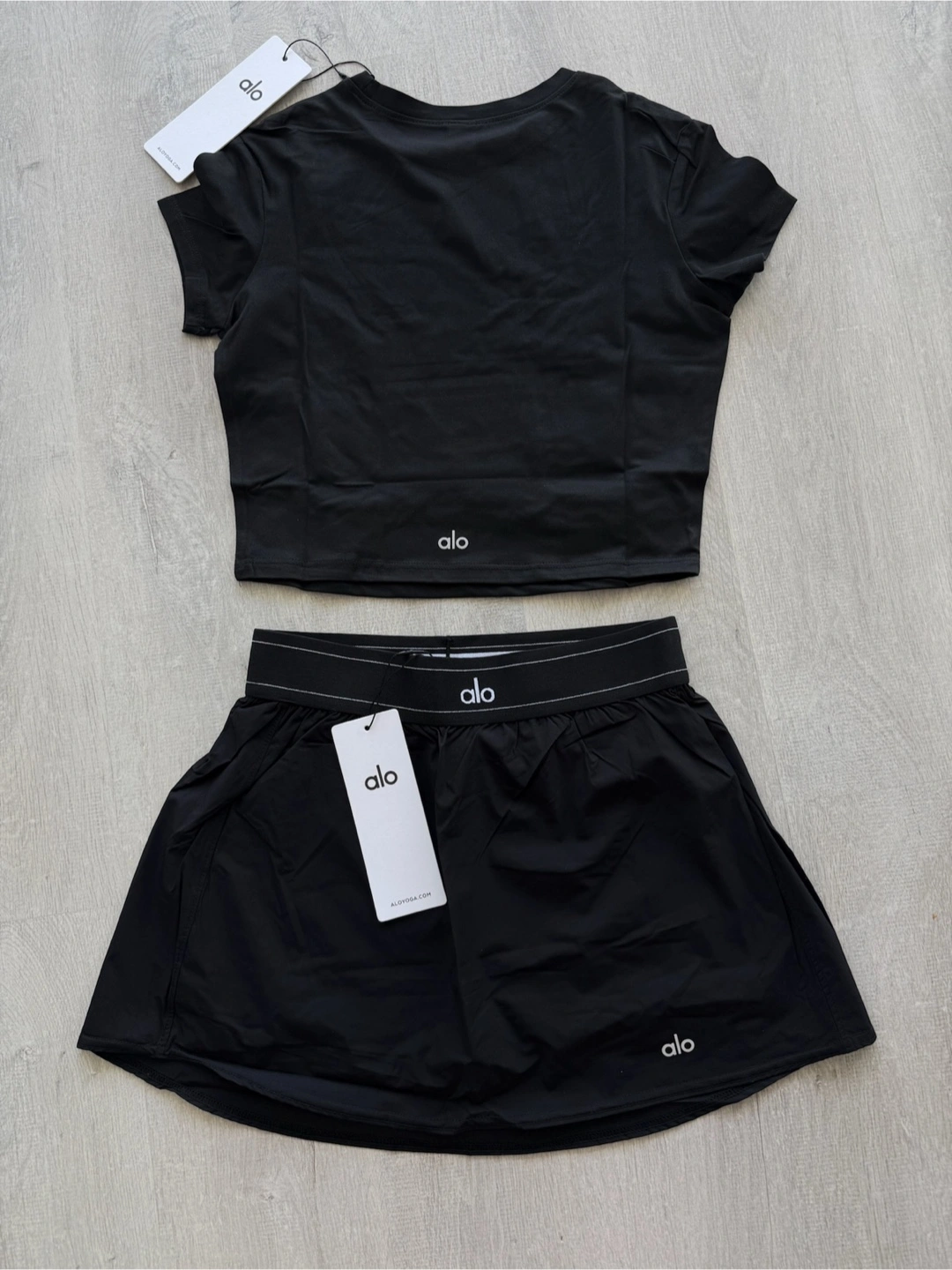 I’m selling ALO Yoga Match Point Shorts and Alosoft Cropped Tee. Brand new authentic with tags. Perfect for outdoor plans. You can purchase the skirts and tee individually and available in Small to Large. Retails 200++!