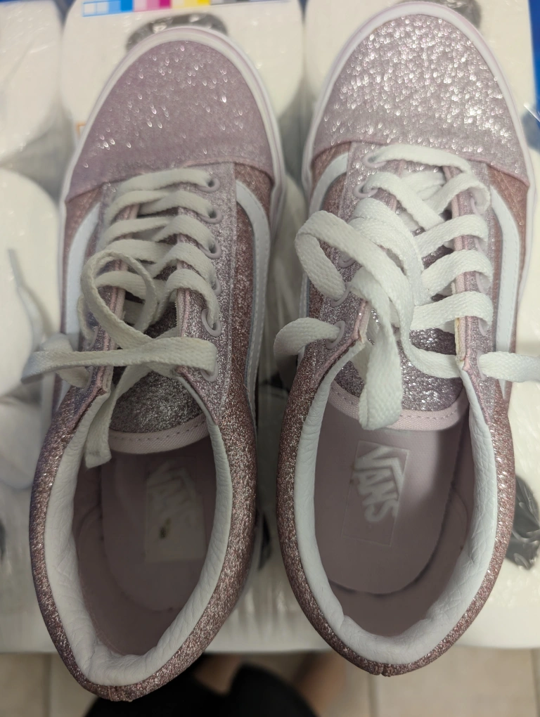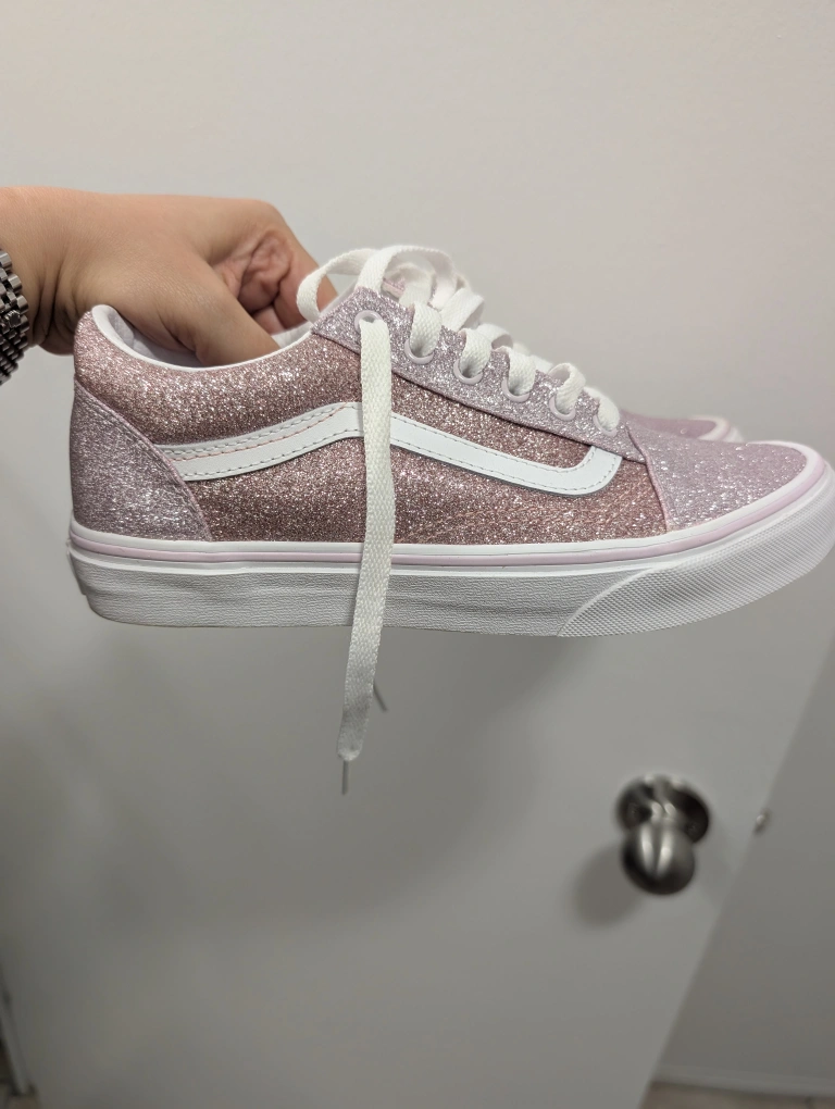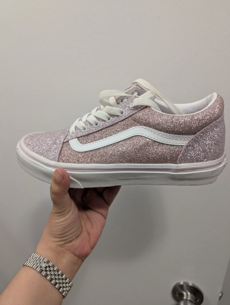 Girls Vans sneakers in a very pretty glittery 3 toned pink.