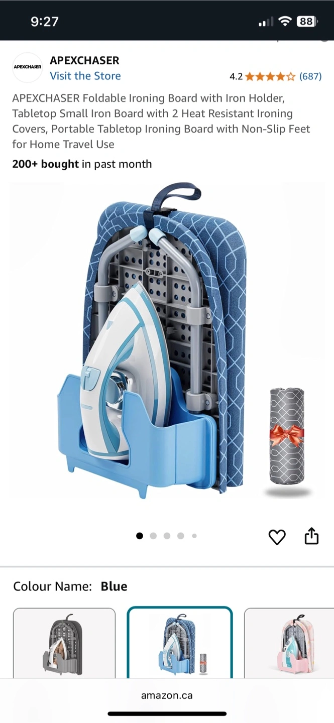 Selling a blue APEXCHASER foldable ironing board with an iron holder! This tabletop ironing board comes with heat-resistant ironing covers and non-slip feet, making it perfect for home travel use