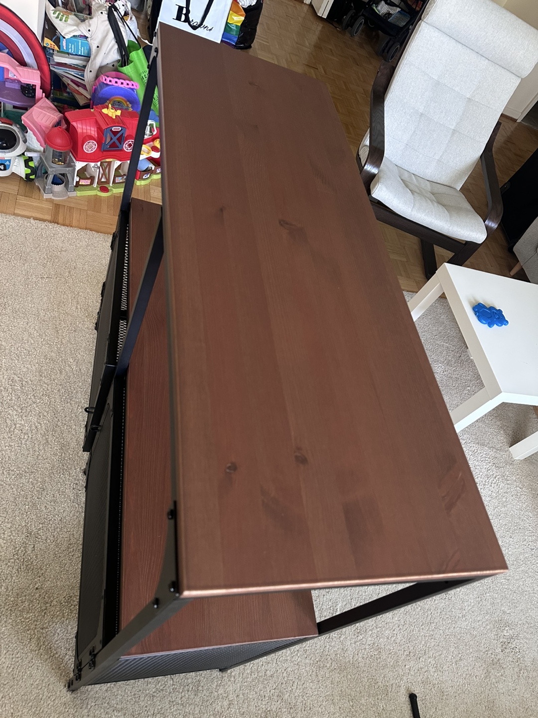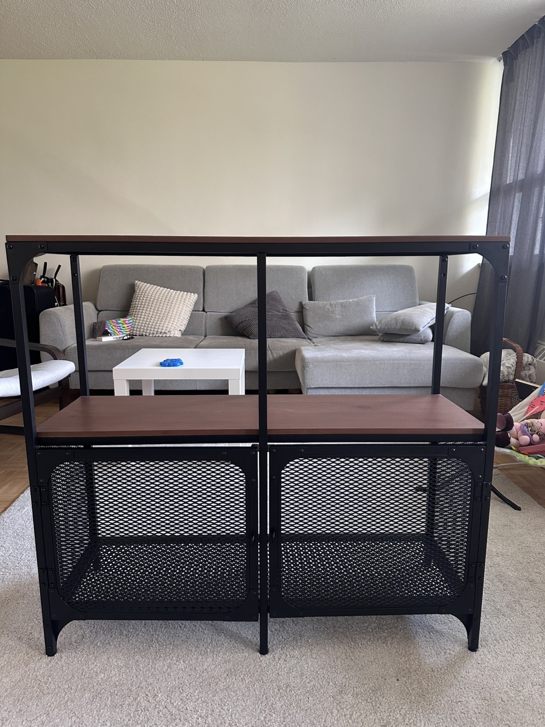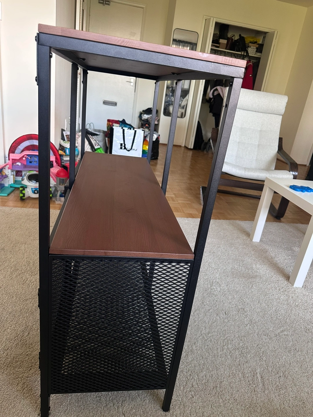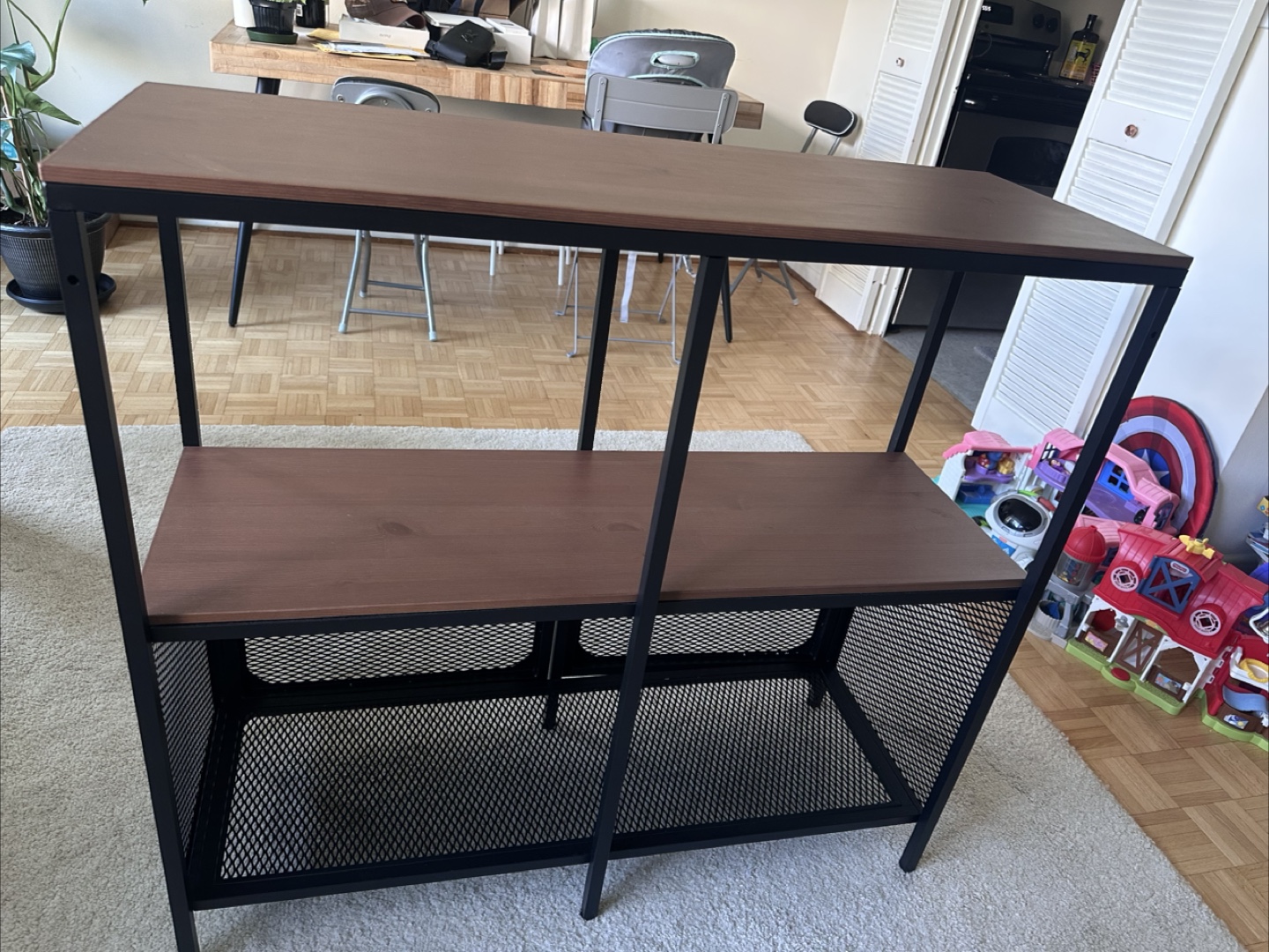 Selling an IKEA FJÄLLBO shelf unit in great condition! It features a stylish brown wood finish with a black metal frame. This unit offers a nice industrial look and is perfect for adding storage and display space to any room. Originally bought for $179.67
