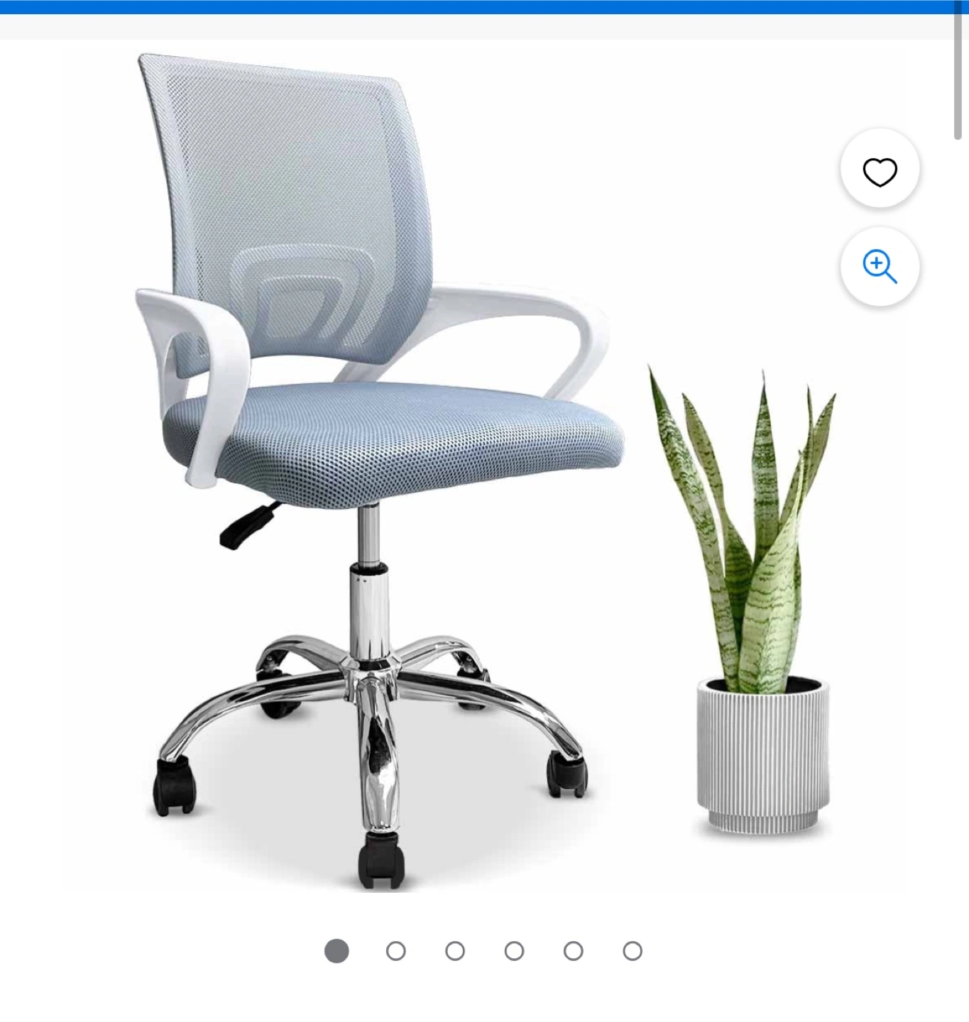 Extra chair in my office space thus selling. It is acomfy office chair with a blue mesh seat and back. It's got white armrests and a chrome base with wheels. Perfect for your home office!