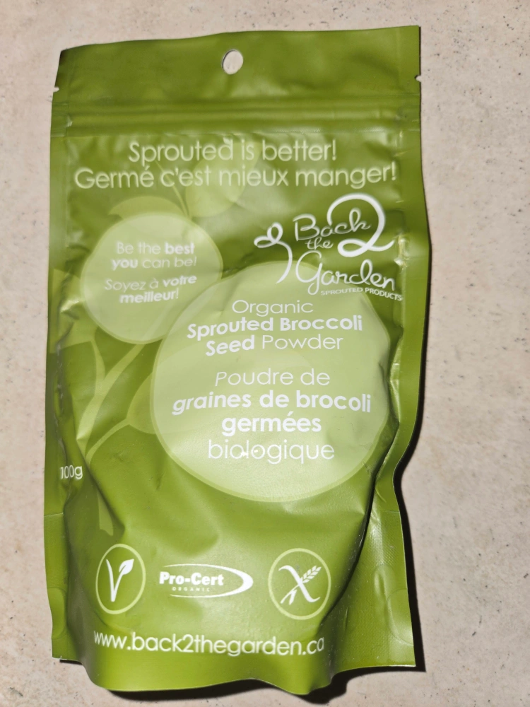 Selling a bag of Back 2 the Garden Organic Sprouted Broccoli Seed Powder. It's a nutrient booster that's easy to add to salads, soups, smoothies, and other recipes. Our broccoli seeds are sprouted, dried, and milled to enhance vitamins and minerals, and to diminish anti-nutritional factors, so you get better mineral absorption