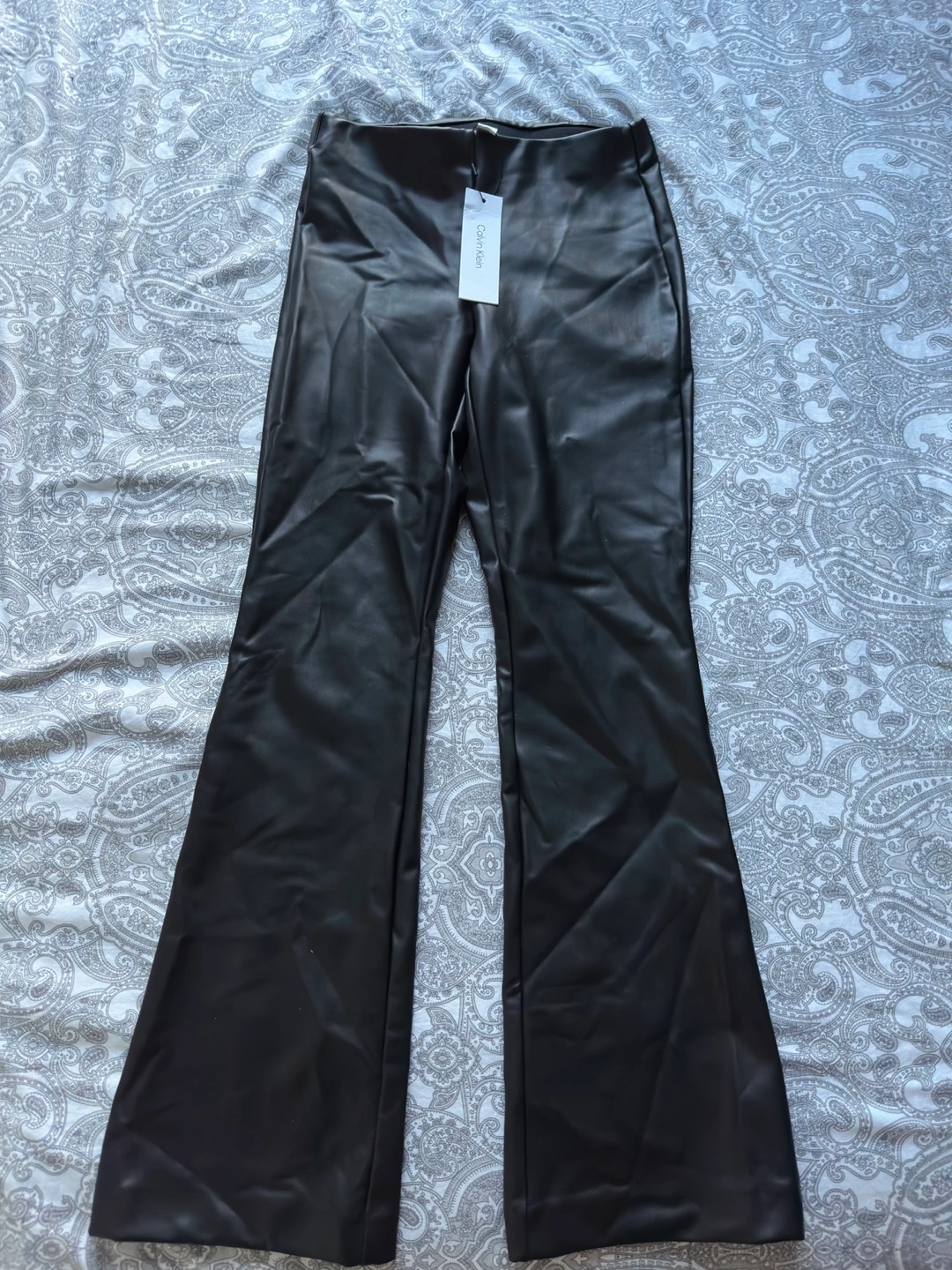 These Calvin Klein faux leather pants are in excellent condition and have never been worn! They're a size XS and still have the original tag attached. Originally bought for $89.50, these pants are a stylish addition to any wardrobe