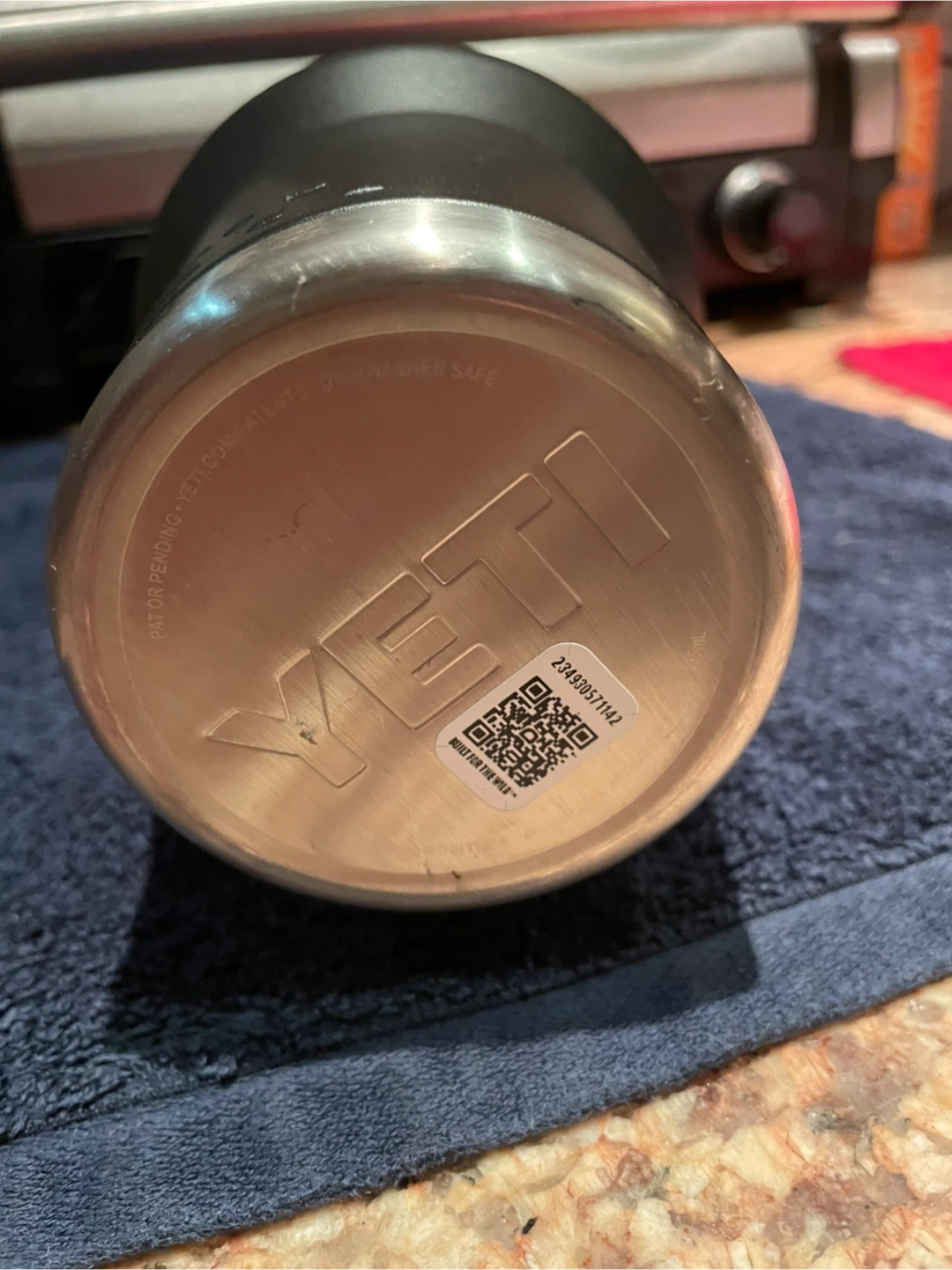 Selling a YETI tumbler in black! It comes with a handle and straw, perfect for keeping your drinks cold (or hot!) on the go. There are some signs of use, but overall it's in good condition and ready for a new home