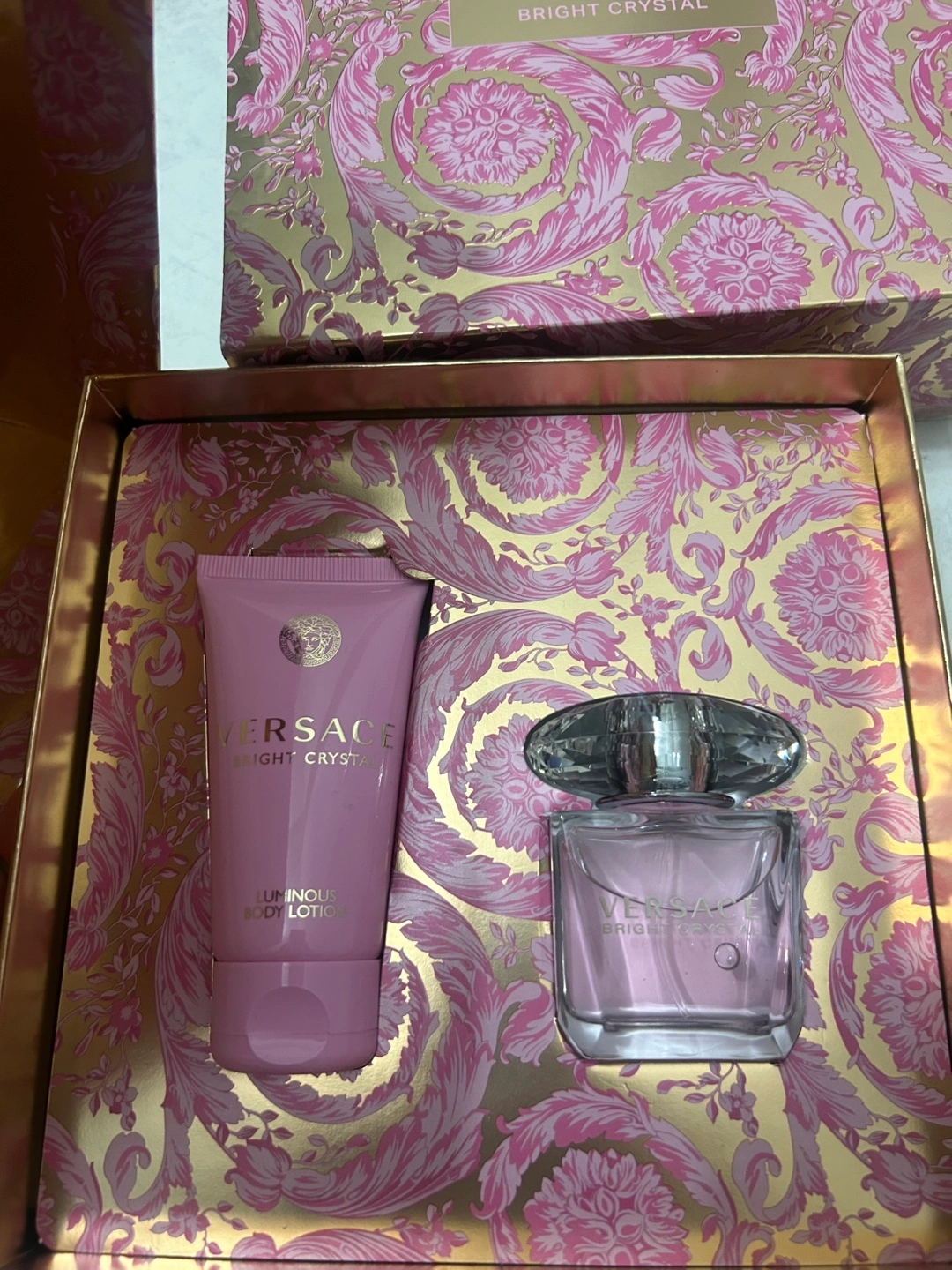 18Selling a Versace Bright Crystal gift set! It includes a luminous body lotion and perfume. The set comes in its original box and not used.