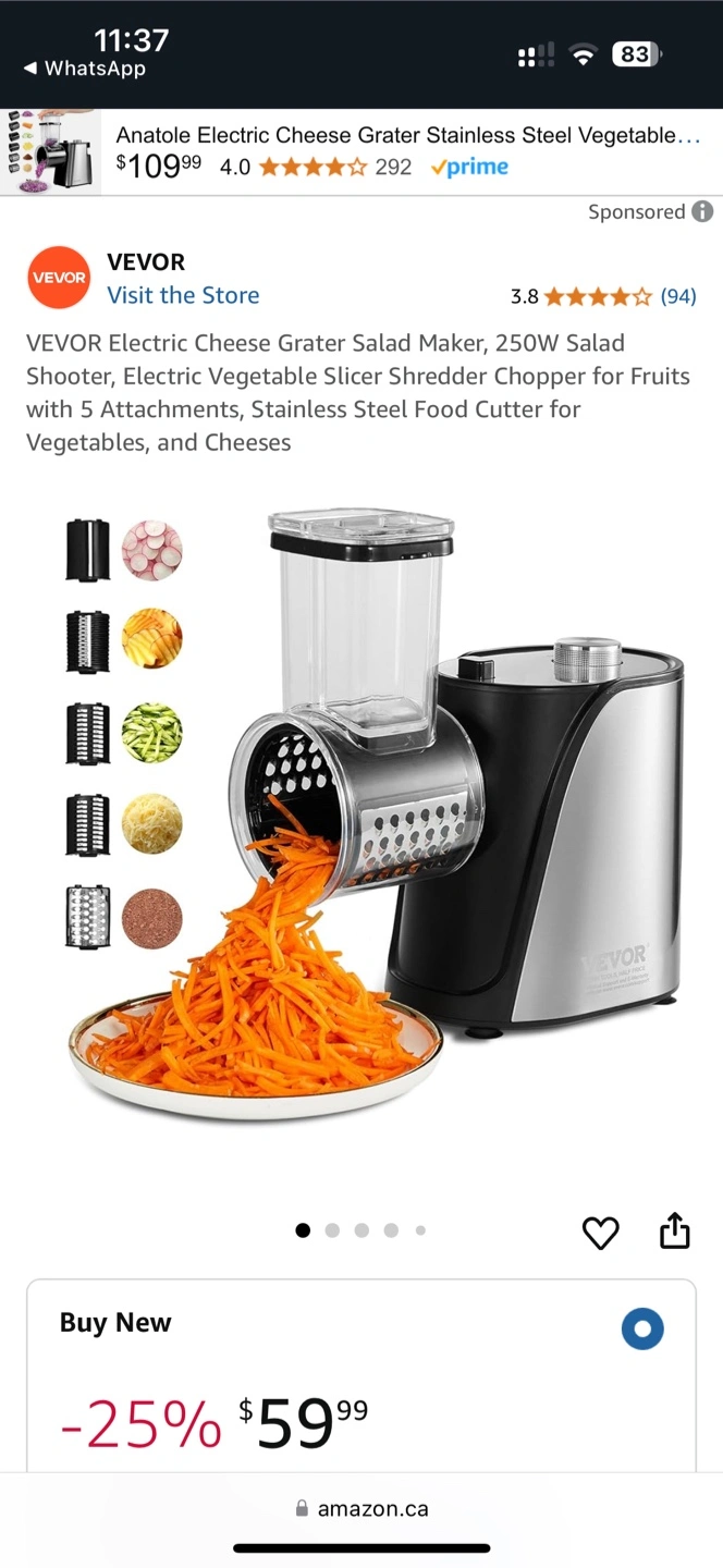 I'm selling a VEVOR electric cheese grater and salad maker. It was a gift & I have something similar so I don’t need it.It's a 250W salad shooter and electric vegetable slicer shredder chopper, perfect for fruits, vegetables, and cheeses! It comes with 5 attachments to make food prep easy.