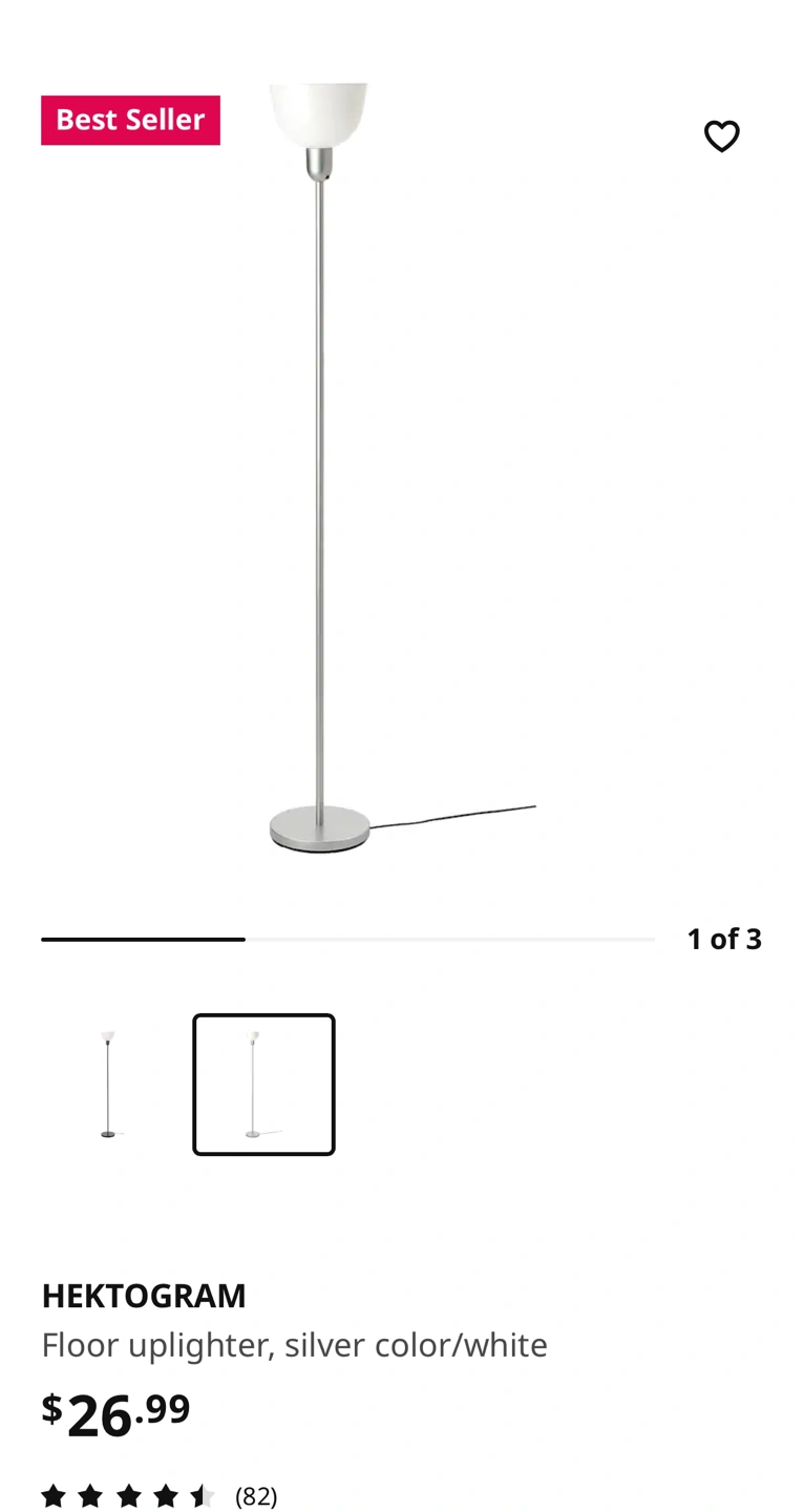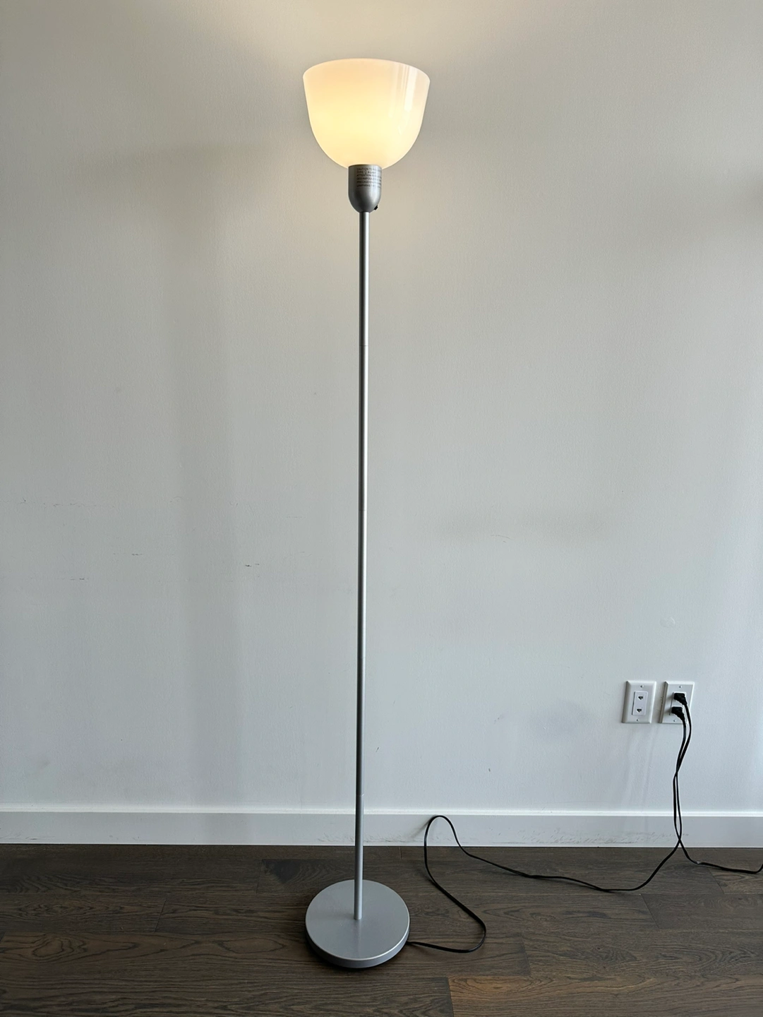 IKEA Hektogram floor uplighter lamp, silver/ white with 2 bulbs