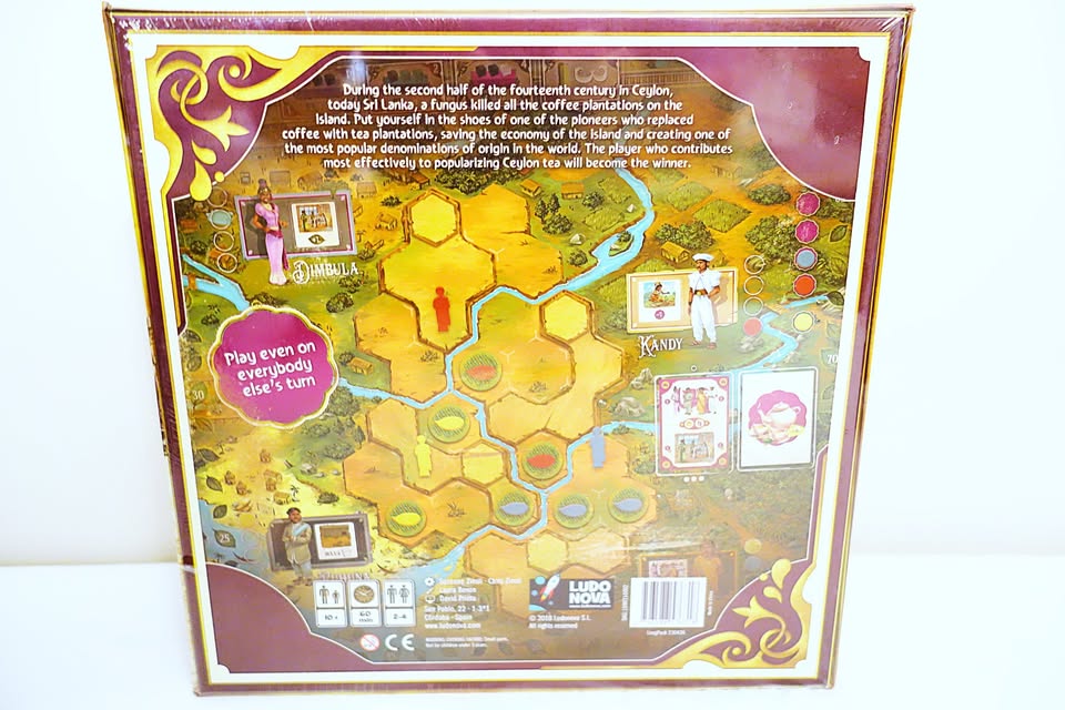 In Ceylon, players take on the role of the pioneers who developed the Ceylon tea industry. As such, they build plantations in different districts and at different altitudes. They produce tea and try to sell it to the most important export companies. To favor this task, they must win the favor of the counselors of each district and develop the necessary technology that allows them to get ahead of their competitors.