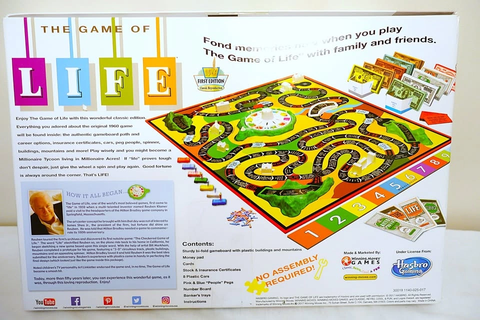 This game attempts to mirror life events many people go through from going to college, raising a family, buying a home, working and retiring.